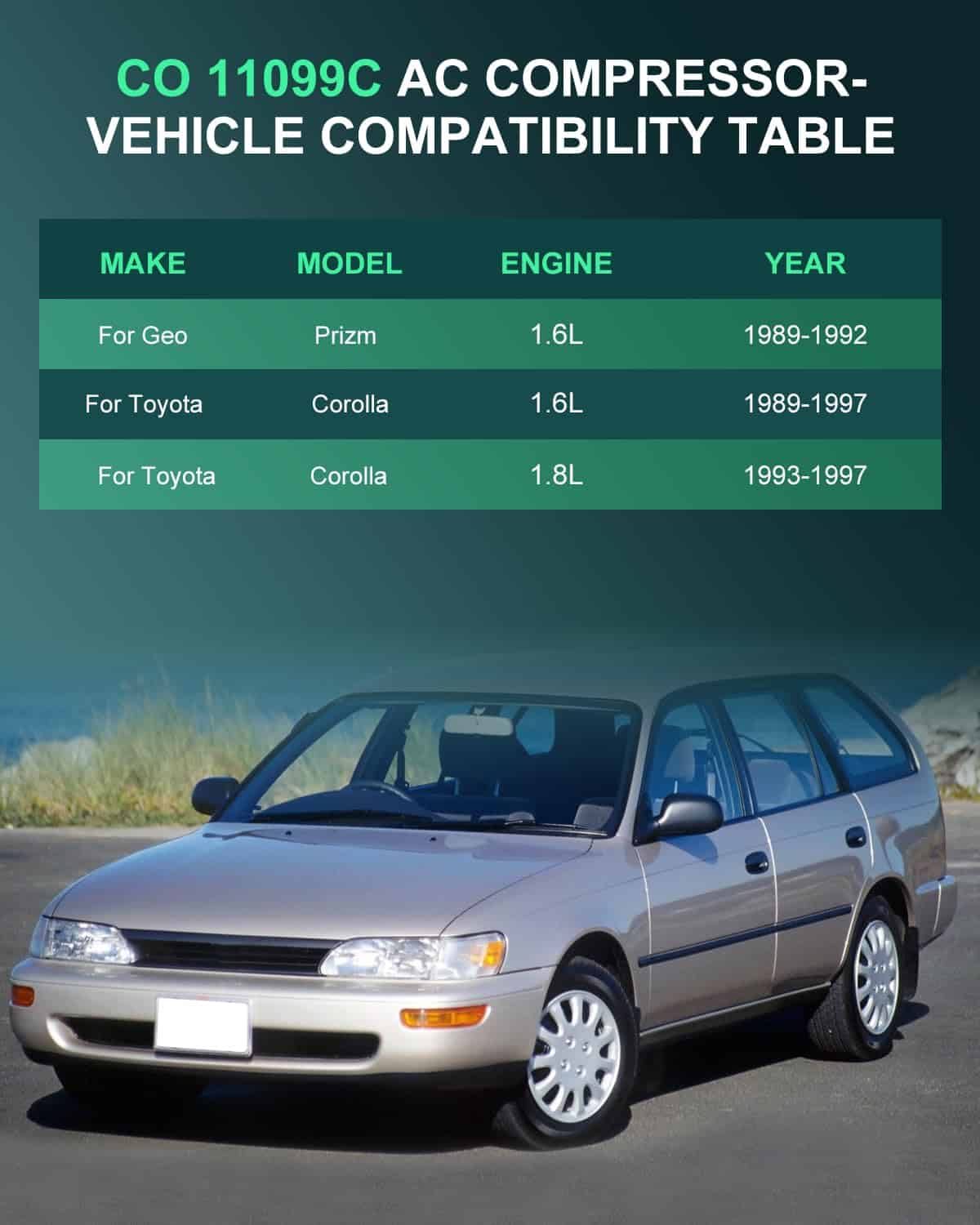 Compresor de Aire Acondicionado Compatible: 1989-1992 para Geo Prizm, 1989-1997 para Toyota Corolla. Incluye compresor de A/C con embrague