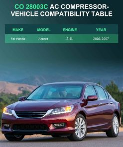 SCITOO Brand New A/C Compressor and Clutch se ajusta a: 2003-2007 Honda Accord 2.4L. Paquete Incluido: 1 COMPRESOR DE AIRE ACONDICIONADO CON EMBRAGUE. Características: Bujes incluidos para una instalación completa, ahorrando tiempo y mano de obra. Reemplazo directo para una instalación sin problemas. Construcción de acero, hierro o aluminio asegura durabilidad. Recubierto de polvo o pintado para una resistencia al óxido y corrosión duradera.