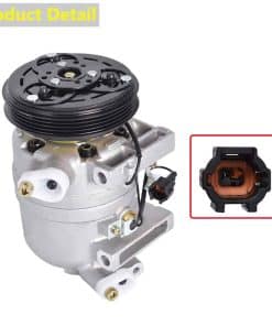 Número de parte: CO 10386C, 10348171, 6511659, 7511659. Repuesto para: 1999-2004 Nissan Frontier 3.3L, 2000-2004 Nissan Xterra 3.3L. Especificaciones: Diámetro del embrague (pulgadas): 5.63. Ranuras: 4. Tipo de montaje: Tangente. Tipo de puerto: O-Ring. Voltaje: 12. Atención: Este compresor viene precargado con la cantidad correcta de aceite. Por lo tanto, no es necesario agregar aceite adicional a su sistema. Por favor agregue refrigerante de 70-80% sin llenar completamente. Puede haber ruido si se agrega demasiado refrigerante.