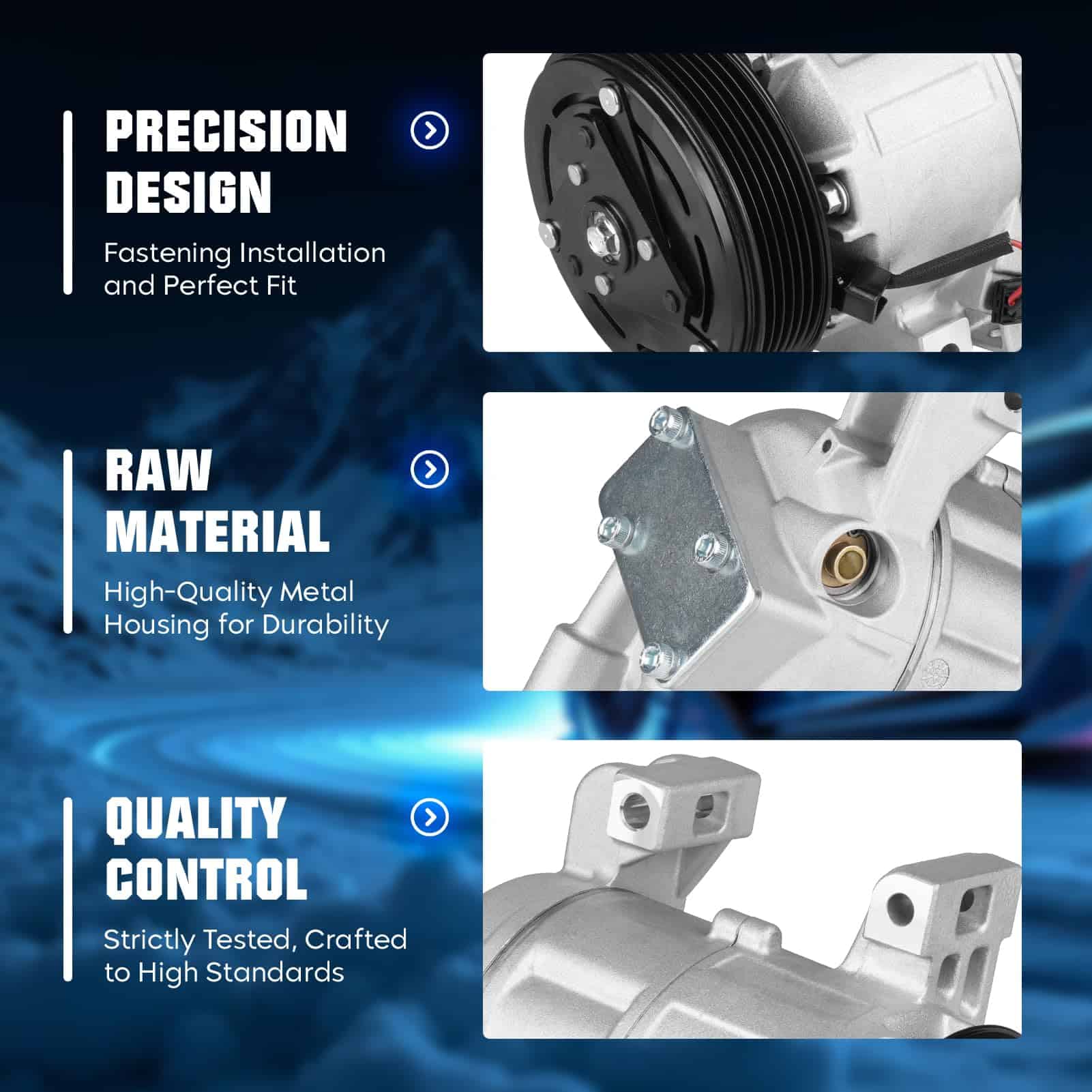 3. Fabricación cuidadosa: El compresor de aire acondicionado adopta excelentes materiales y tecnología avanzada, lo que mejora considerablemente su rendimiento y durabilidad y prolonga su tiempo de uso.