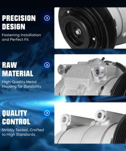 El compresor de aire acondicionado adopta materiales y tecnología excelentes, lo que mejora significativamente su rendimiento y durabilidad y prolonga su tiempo de uso. Antes de instalar el compresor de aire acondicionado, limpie las tuberías del sistema de enfriamiento de su automóvil y verifique que el ventilador y el condensador estén funcionando correctamente para no afectar el uso de las nuevas piezas. Especificaciones del compresor: Tipo de Aceite: PAG 46; Tipo de Refrigerante: R134a; Aceite Precargado: 150ML; Ranuras de la Polea 6; Diámetro de la Polea (mm) 119.