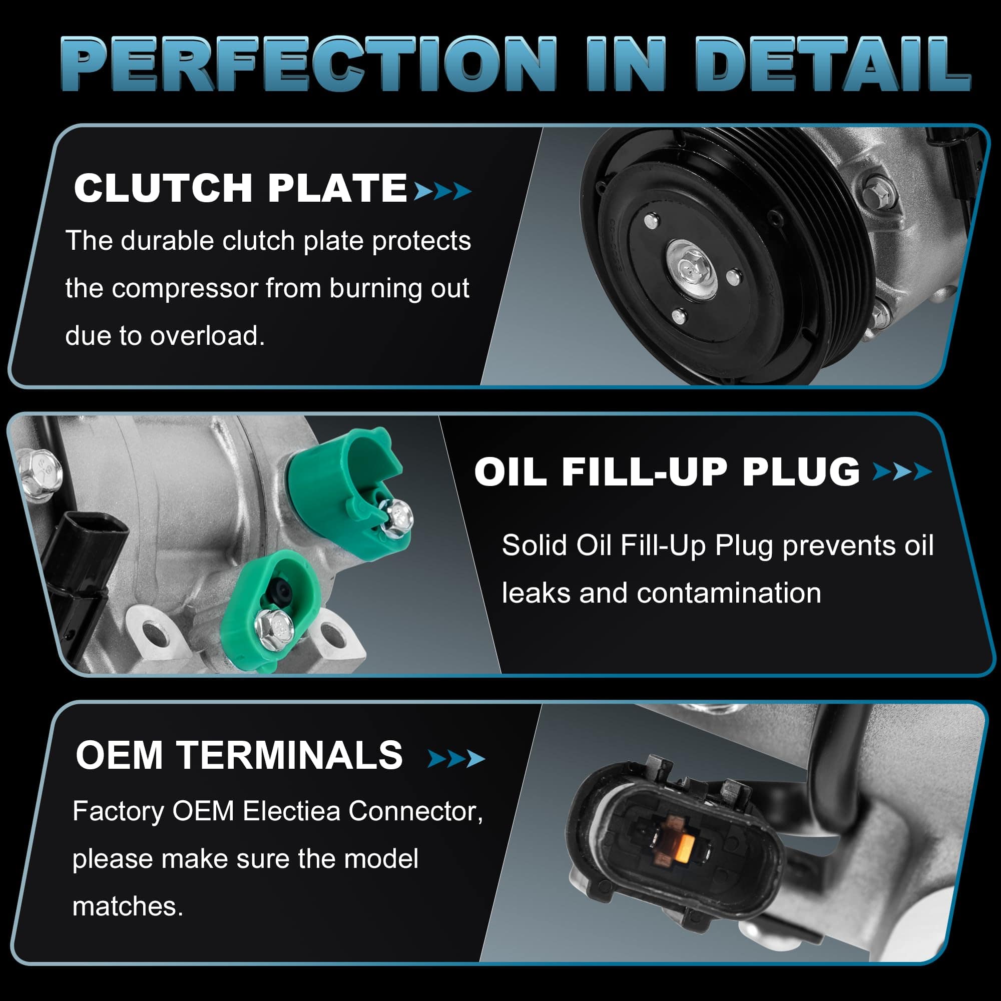 3. Compresor de aire acondicionado de alta eficiencia con tecnología de compresión avanzada para una compresión eficiente de refrigerante. ¡Permite un enfriamiento rápido y le brinda una experiencia de conducción cómoda y refrescante!.
