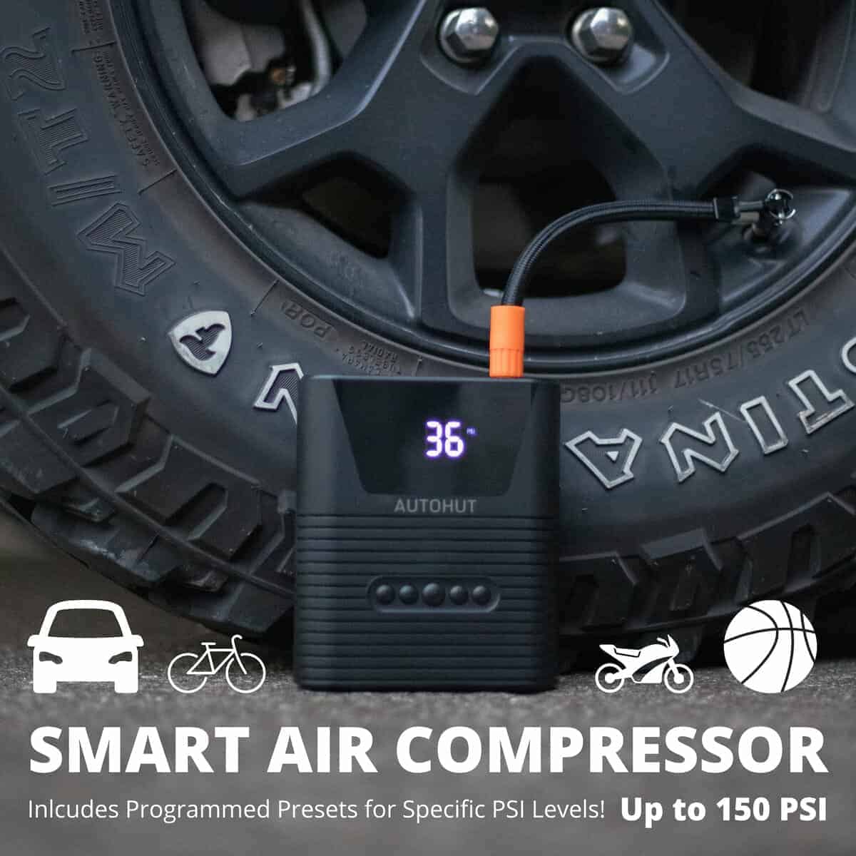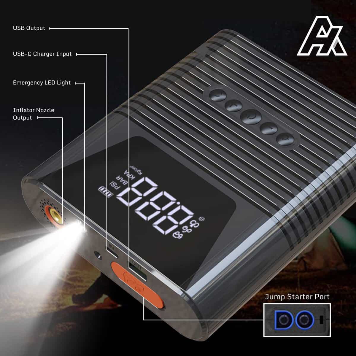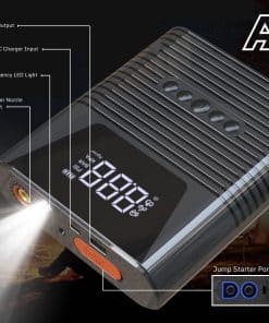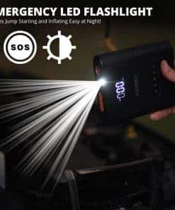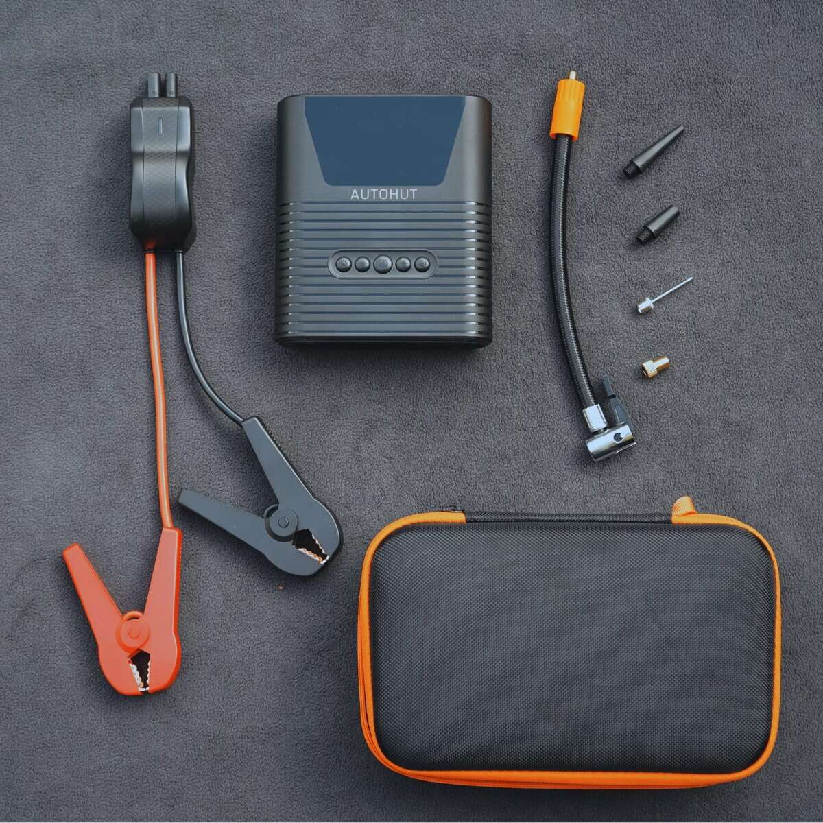 El compresor de aire portátil AUTOHUT es una herramienta versátil que combina un arrancador de coche, un cargador de batería de 12V 8800mAh y un inflador de neumáticos de 150PSI en un solo dispositivo compacto. Con una pantalla LCD integrada, podrás monitorear la presión de los neumáticos con precisión. Además, cuenta con una función de linterna de emergencia para situaciones de poca visibilidad. También funciona como power bank con puerto USB para cargar tus dispositivos electrónicos. ¡Todo lo que necesitas en un solo producto!