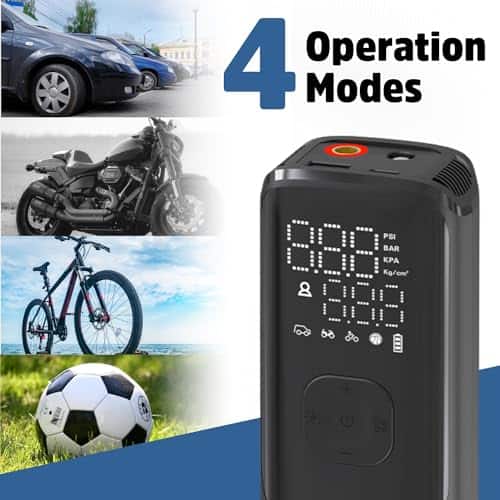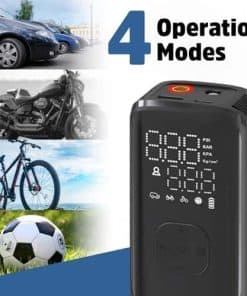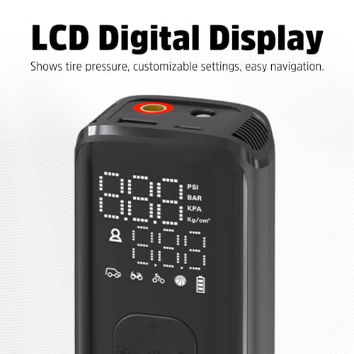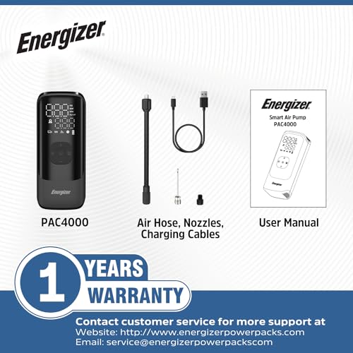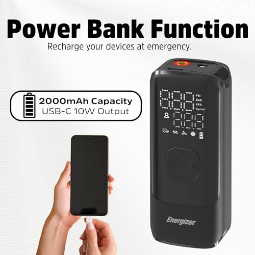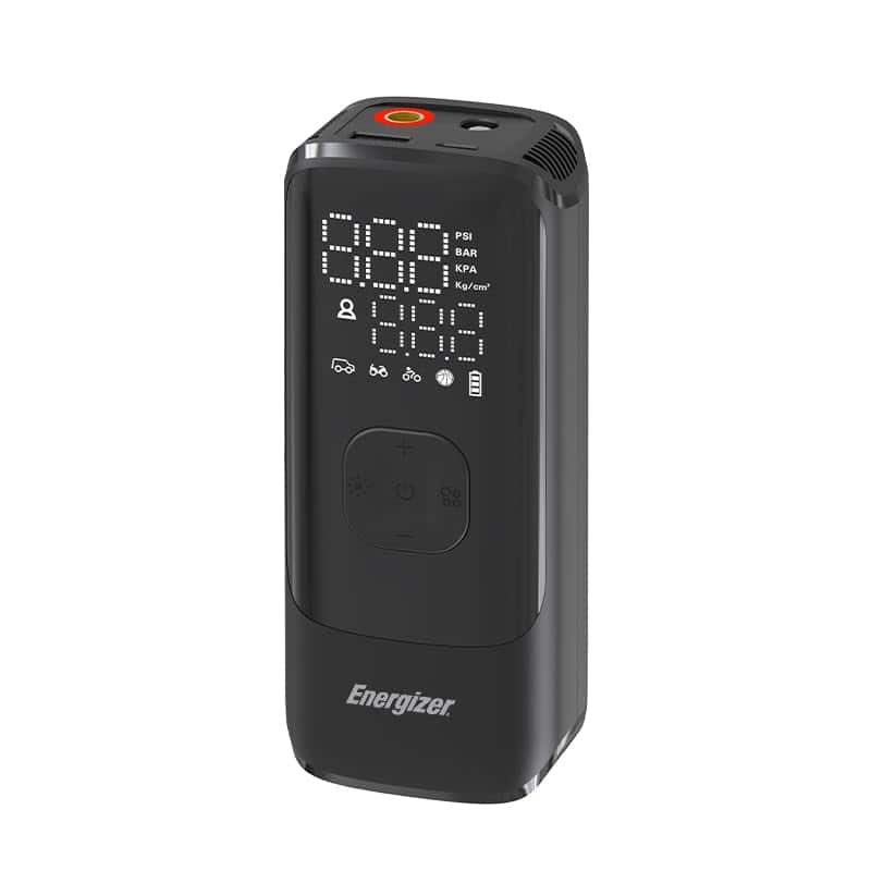 El Compresor de Aire Portátil Energizer PAC4000 ofrece múltiples modos de operación, 4 unidades de detección de neumáticos y 1 modo personalizado, 3 tipos de boquillas que funcionan perfectamente con una presión de hasta 150 PSI para inflar diferentes tipos de neumáticos. Los 5 modos de funcionamiento (Coche/Bicicleta/Motocicleta/Pelota/Personalizado) ofrecen una operación sencilla que puede inflar en función del valor de presión preestablecido. Incorpora una función de apagado automático que detendrá la inflación automáticamente una vez que la presión de los neumáticos alcance el valor preestablecido para una experiencia de usuario segura y confiable. La pantalla LCD muestra la presión actual, la presión preestablecida y la selección del modo claramente con un simple vistazo. Con funciones de banco de energía y luz LED, el PAC4000 puede recargar tus dispositivos en situaciones de urgencia y iluminar lugares oscuros, ya sea que estés de viaje al aire libre o trabajando en el garaje. El diseño compacto te permite llevarlo a cualquier lugar en cualquier momento. El PAC4000 es la solución potente para tu vida diaria en cualquier momento en movimiento.