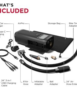 ¿Estás cansado de pagar por aire en una gasolinera para inflar tus neumáticos y terminar mareado al inflar inflables de piscina Con el Limitless AirPro, ¡tienes el poder en tus manos para inflar neumáticos y objetos como pelotas, tubos, globos y más! Perfecto para conductores, entusiastas del ciclismo, atletas y familias que están constantemente en movimiento hacia su próxima aventura. Este compresor de aire portátil y ligero está diseñado pensando en tu comodidad y seguridad. ¿Atrapado en la oscuridad No hay problema! La linterna de 3 modos y el banco de energía USB te mantendrán conectado mientras aumentan tu visibilidad. ¡Verifica la presión de aire de un neumático con la pantalla digital y ajusta el apagado automático al nivel adecuado para que nunca tengas que preocuparte por sobrellenar tus neumáticos de nuevo! Incluye almacenamiento incorporado para los adaptadores incluidos que son compatibles con neumáticos, pelotas e inflables.