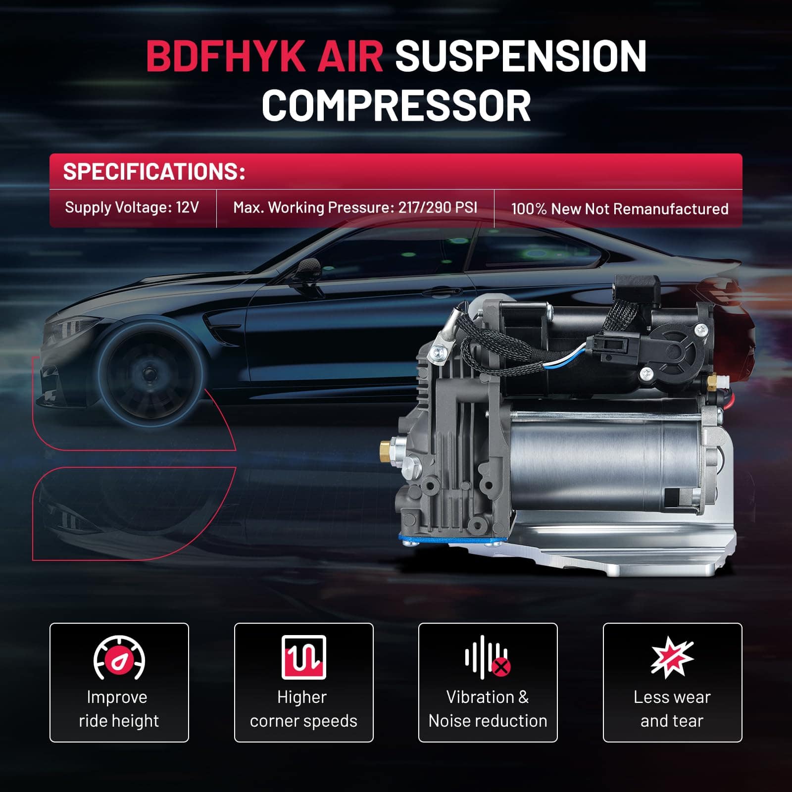 5. Garantía: ¡Este compresor de suspensión neumática ofrece una garantía de calidad de 1 año! Cualquier problema de calidad, no dude en contactarnos, ¡BDFHYK se enfoca en la satisfacción del producto y del cliente al proporcionar productos de alta calidad a precios razonables.