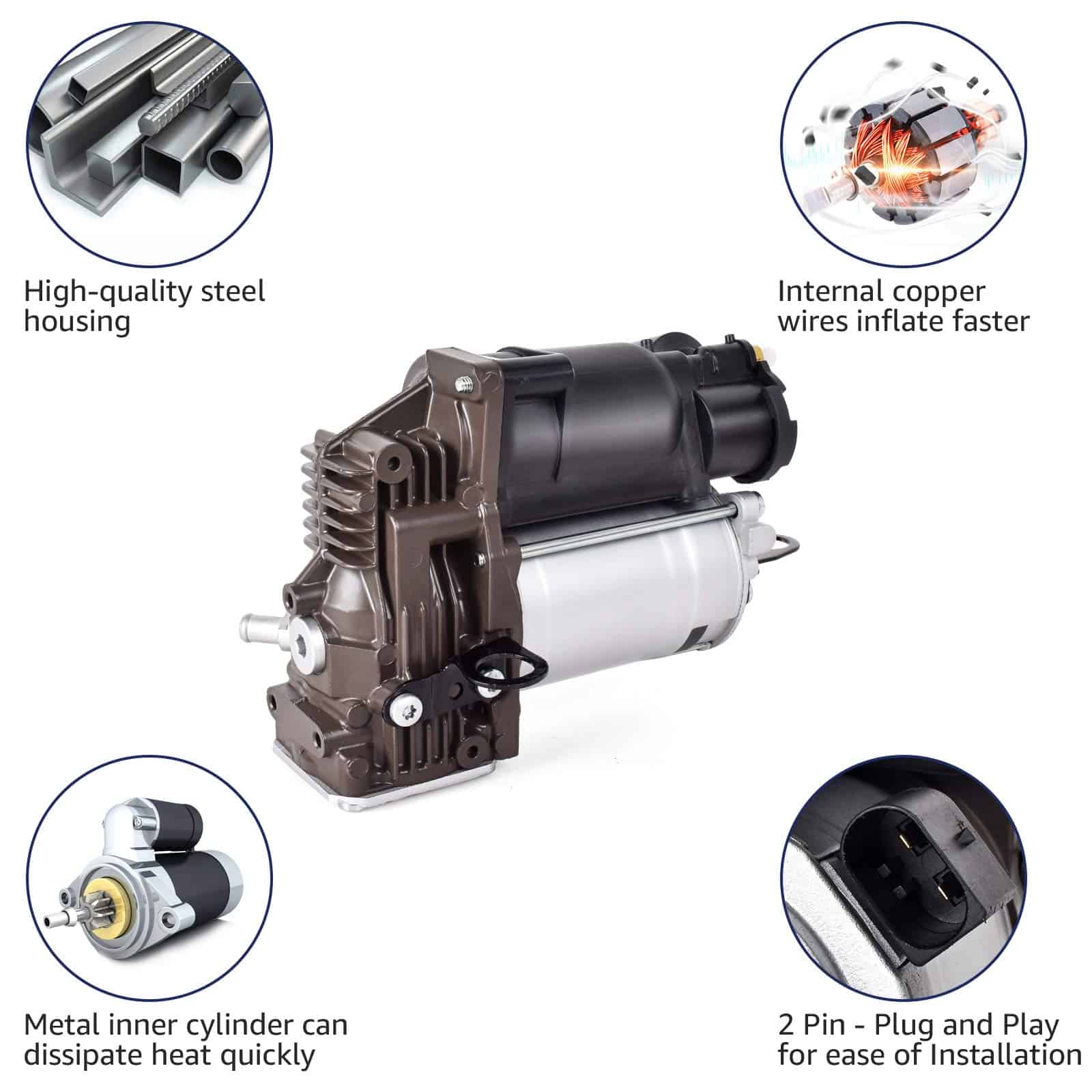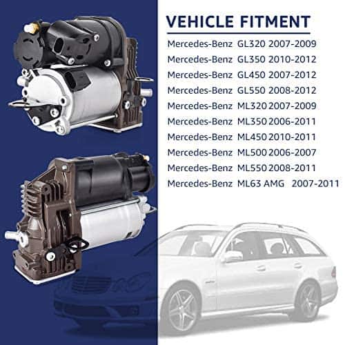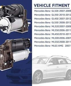 1. Modelos y Años: Compatible con los modelos Mercedes Benz X164: GL320 2007-2009, GL350 2010-2012, GL450 2007-2012, GL550 2008-2012. 2. Modelos y Años: Compatible con los modelos Mercedes Benz W164: ML320 2007-2009, ML350 2006-2011, ML450 2010-2011, ML500 2006-2007, ML550 2008-2011, ML63 AMG 2007-2011. 3. Número OEM: 1643200004, 164320000428, 1643200104, 1643200204, 1643200304, 1643200504, 164320050428, 164320050480, 1643200904, 164320090405, 164320090480, 1643201204, 164320120405, 164320120480. 4. FUNCIÓN: Un compresor de suspensión neumática es el corazón de cualquier sistema de suspensión neumática, comprime aire en el resorte neumático para cambiar la altura de conducción del automóvil y eliminar la caída excesiva de la suspensión, restaurando la maniobrabilidad y seguridad del vehículo. 5. RECORDATORIO: Por favor, confirme los modelos de vehículo y el número de parte antes de realizar el pedido. Pida ayuda a un ingeniero profesional para instalar la pieza de automóvil, operación cautelosa. Si tiene algún problema, por favor hágamelo saber.