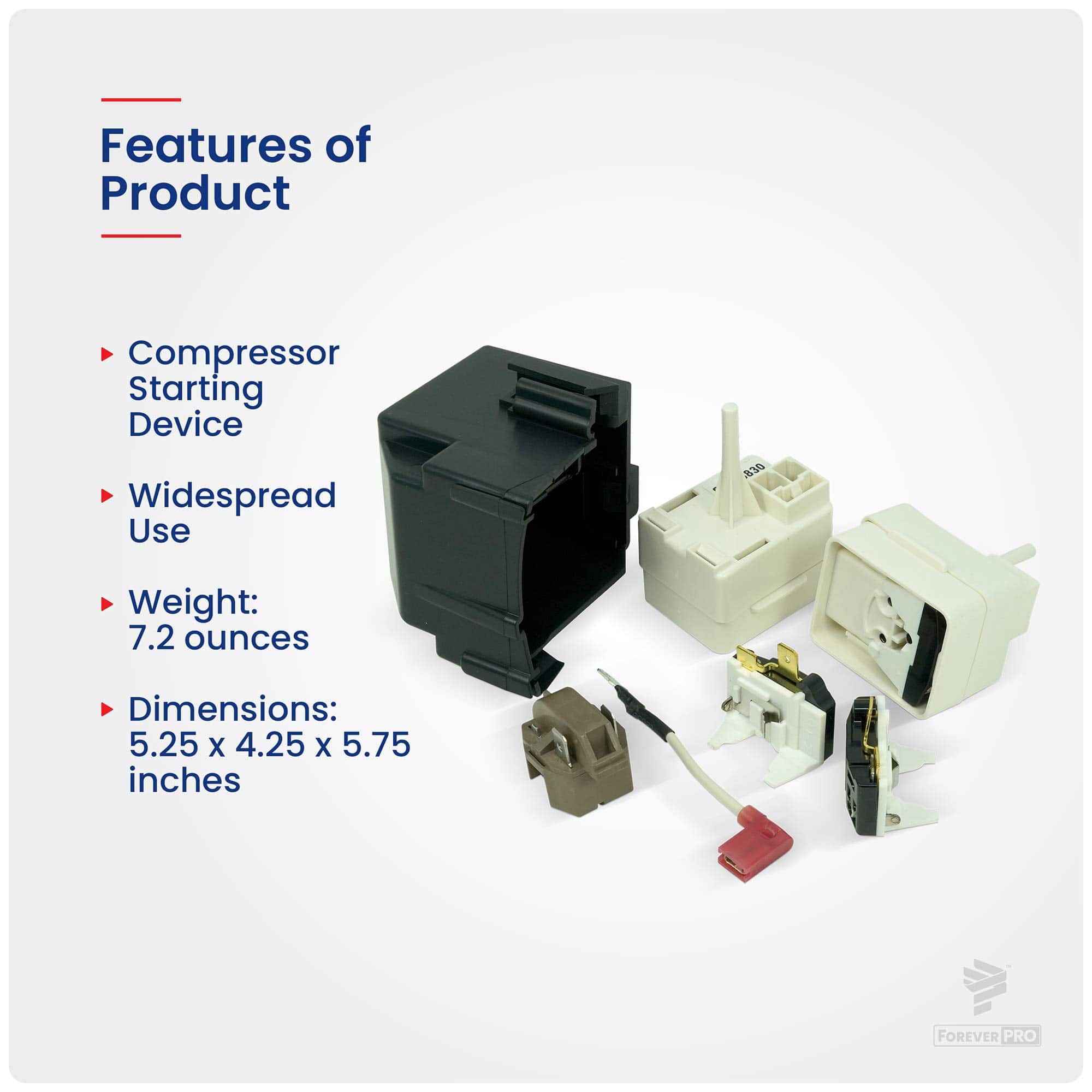 El compresor Start-Dev del refrigerador ForeverPRO Parte número 8201786 reemplaza a 2188830 8201532 8201531 1177466 2188829 2188832 2188833 2188844 2188845 2188846 2188847 2212193 2212194 2216697 2216722 2220474 2220475 2220476 2220477 AH993073 EA993073 PS993073 Se adapta al refrigerador Whirlpool. Compatible con Whirlpool Maytag KitchenAid Jenn-Air Amana Magic Chef Admiral Norge Roper y otros. Este producto no es OEM de Whirlpool. El uso de los nombres comerciales y logotipos de los fabricantes son marcas registradas de sus respectivos propietarios. Cualquier uso del nombre de marca, números de pieza o designación de modelo de los fabricantes para este producto se hace únicamente con fines de demostración y compatibilidad de identificación y se muestran únicamente con fines descriptivos. Su uso no se asocia con ninguna afiliación o respaldo por parte de ningún fabricante. Compatible con 7ED0GTQXKQ00 7ED0GTQXKQ01 7ED0GTQXKQ02 7ED5FHEXMS00 7ED5FHEXRS00 7ED5FTGXKT00 7ED5FTGXKT01 7ED5FTGXKT02 7ED5GHGXMQ00 7ED7FHGXKQ00 7GS6SHAXKB00…