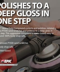 Nuestro Compuesto EPIC de Alta Resistencia está diseñado para eliminar arañazos severos de cualquier vehículo, siendo el mejor removedor de arañazos profundos para coches. Elimina hasta P1500 arañazos de lija, restaurando la pintura de su coche a un acabado profundo y brillante. A diferencia de muchos compuestos «todo en uno» que ocultan defectos, EPIC de Alta Resistencia los elimina por completo sin rellenos, ceras o siliconas, asegurando un acabado brillante duradero que mantiene su vehículo luciendo como nuevo. Este avanzado compuesto de pulido para coches corrige y pule en un solo paso, reduciendo su tiempo de pulido y pulido. Nuestra nueva tecnología de compuesto se descompone en un pulimento a medida que trabaja, asegurando una transición perfecta de corte a acabado. Perfecto para lograr un brillo impecable y espejado, este compuesto para coches es a base de agua, 100% seguro para talleres de carrocería y fácil de usar, lo que lo hace ideal tanto para detallistas profesionales de coches como entusiastas de coches DIY. El Compuesto EPIC de Alta Resistencia ofrece una aplicación libre de polvo, manteniendo su espacio de trabajo limpio y eficiente. Ofrece un acabado sin remolinos cuando se usa con la almohadilla orbital correcta, como la Almohadilla de Lana Púrpura de Alta Resistencia Epic o la Almohadilla de Espuma Gris de Alta Resistencia EPIC. Este compuesto para pulir coches garantiza que la pintura de su vehículo permanezca suave y brillante sin marcas de remolino antiestéticas, ofreciendo un resultado de grado profesional en todo momento. Restaure fácilmente el acabado de pintura original de su vehículo eliminando pequeños remolinos y arañazos en la capa transparente con nuestro compuesto de pulido para pinturas de coches. Este pulimento compuesto está formulado para mejorar la apariencia de su vehículo, resaltando un brillo impresionante de coche de exhibición. Es perfecto para mantener la belleza de su coche, camioneta o SUV, asegurando que su vehículo siempre luzca lo mejor posible, independientemente de su edad o condición. Para obtener resultados óptimos, aplique este compuesto para pulir coches con la Almohadilla de Lana Púrpura de Alta Resistencia EPIC 6.25″ o la Almohadilla de Espuma Gris de Alta Resistencia EPIC 6.5″. Estas almohadillas específicas están diseñadas para funcionar perfectamente con nuestro compuesto, proporcionando un acabado impecable. Si no tiene las almohadillas EPIC, cualquier almohadilla de pulido de espuma de alta calidad y alta densidad también funcionará, lo que le permitirá obtener resultados profesionales con las herramientas adecuadas.