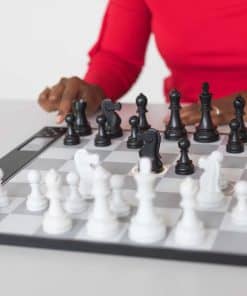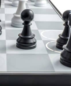 No es necesario usar pantallas de computadoras o tabletas. Simplemente comienza a jugar ajedrez de forma natural con tecnología inteligente de detección automática. Las impresionantes piezas ponderadas y la pantalla iluminada en el tablero dentro de las casillas te involucran en una experiencia de juego de ajedrez altamente táctica y completamente contenida que disfrutarás durante horas y horas.