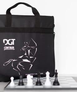 Acerca de Centaur: se adapta a tu fuerza, sensor de tablero detecta movimientos en la casilla, luces LED indican los movimientos, batería interna recargable, piezas de ajedrez ponderadas (compatibles con otras piezas DGT), pantalla de tinta electrónica de posición, movimientos e información, sistema de pistas, configuración de posición y más, muchos idiomas, garantía DGT de 2 años incluida.