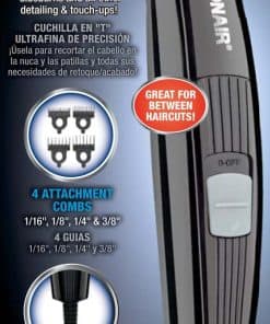 Da forma y recorta con precisión con la Cortadora de Detalles Conair Trim Up con Cable. ¡La cuchilla ultra fina y extra ancha en forma de T te mantendrá luciendo lo mejor posible, especialmente entre cortes de cabello! Ideal para usar en el cuello, las patillas y cualquier otro recorte y aseo detallado. Incluye 4 peines de fijación: 1/16″, 1/8″, 1/4″ y 3/8″. Potente cortadora con cable.