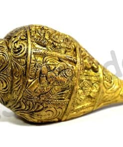 Concha Shankh de Latón con Tallado de Ganesha | Decoración