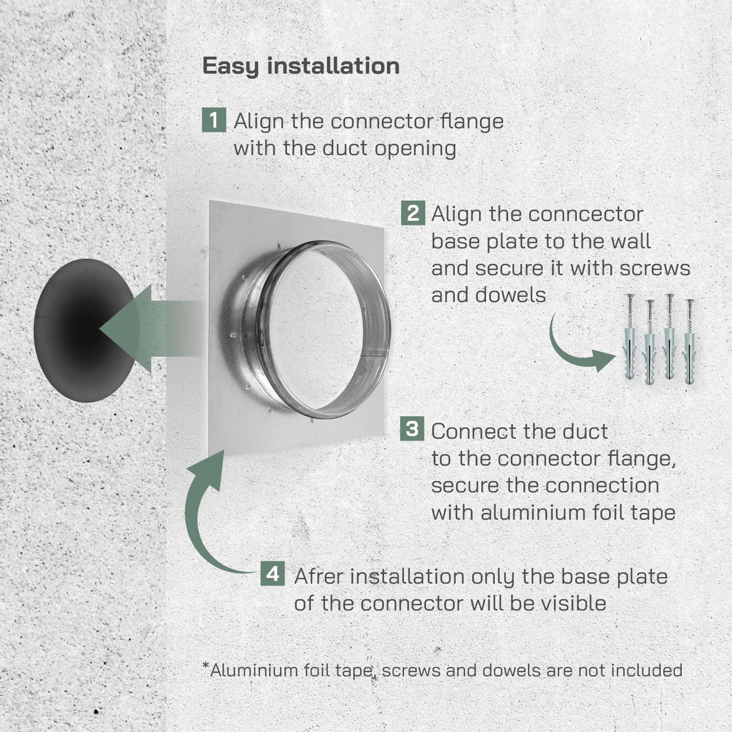 El conector de conducto flangeado Vent Systems con placa de montaje está hecho para conexiones e integraciones sin fisuras de conductos en sistemas de HVAC. Sirve como adaptador entre diferentes secciones de conductos, asegurando una conexión sin fisuras que mejora el flujo de aire y la eficiencia. Las dimensiones precisas son: longitud y ancho de la placa de 8.26″ x 8.26″ pulgadas, diámetro del espigo del conducto de 5.90″ para conexiones de tuberías, altura del cuello del conducto de 1.18″ pulgadas. Instalación: tome la placa del conector de conducto, mida y alinéela correctamente con la superficie. Fíjela con tornillos, utilizando anclajes si es necesario. Selle las juntas con sellante de HVAC o cinta de aluminio para evitar fugas. Asegúrese de que el espigo encaje perfectamente y pruebe el flujo de aire, agregue soporte si es necesario. Adecuado para la gestión industrial del flujo de aire, proyectos de reforma y sellado de penetraciones de conductos a través de paredes, suelos o techos. También es ideal para la ventilación de áticos o espacios debajo de la casa, ayudando a regular la temperatura y prevenir la acumulación de humedad. Perfecto para conductos de secadora, conductos de HVAC e instalaciones de ventiladores de escape y configuraciones hidropónicas, asegurando un flujo de aire eficiente y conexiones seguras en espacios residenciales o comerciales como baños, cocinas y ventilación general.