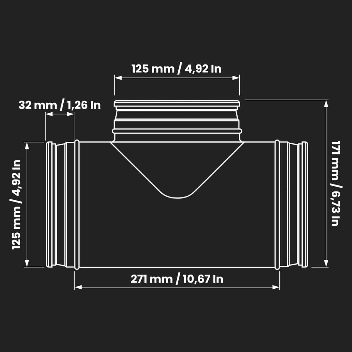 Conector de Ducto en Forma de T de 5 pulgadas a 90 grados