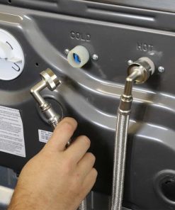 La conexión de lavadora de acero inoxidable de 4 pies de Eastman presenta un núcleo de PVC, refuerzo de nylon trenzado multi-filamento, una cubierta exterior de vinilo transparente y un exterior trenzado de acero inoxidable de grado 304 diseñado para evitar el doblado y el aplastamiento. Esta conexión de manguera para lavadora mide 4 pies de largo, está equipada con una conexión de 3/4 de pulgada FHT y un codo de 90 grados, cuenta con tuercas de latón niquelado con casquillos de acero inoxidable para una instalación sencilla. El kit de conexión de manguera para mezcladora de lavadora está diseñado solo para uso residencial, certificado por CSA y aprobado por UPC. La línea de suministro flexible resiste la corrosión y es fácil de instalar. Cada manguera está codificada por colores, azul para agua fría y rojo para agua caliente.