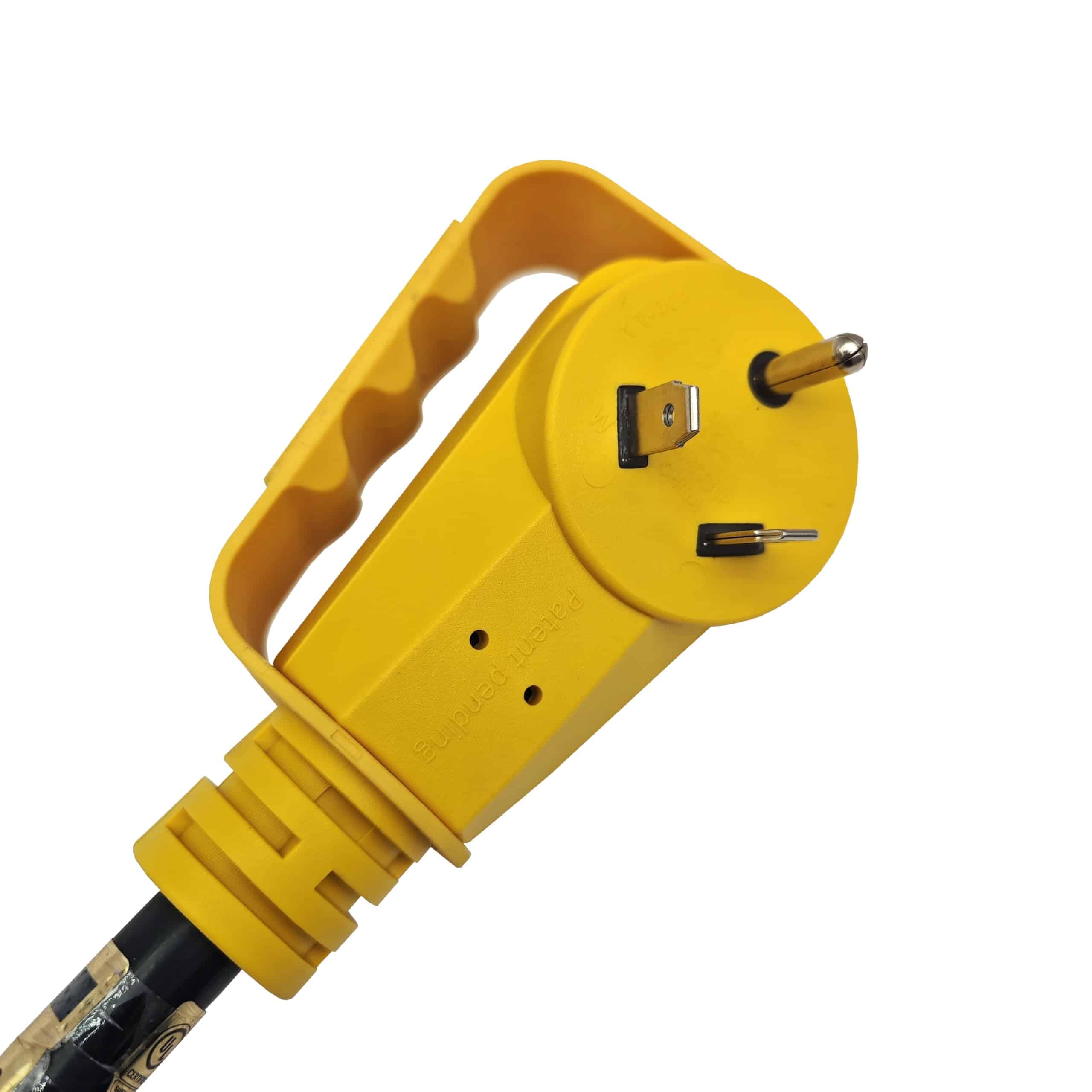 1. Conector en ángulo recto iluminado UL Listed RV de 3 pines NEMA TT-30 macho con tirador de conector giratorio.