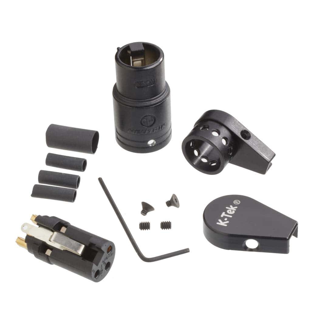 El KPRCF incluye: Conector hembra XLR (basado en Neutrik NC3FXB) Cuerpo en ángulo recto indexable con alivio de tensión de cable Cuerpo de tapa 2x tornillos Allen para la tapa del cuerpo 2x tornillos de fijación Allen para la rotación indexable Tubo termorretráctil precortado Allen en forma de L Llave hexagonal Allen (Tamaño: 0.050 pulgadas)