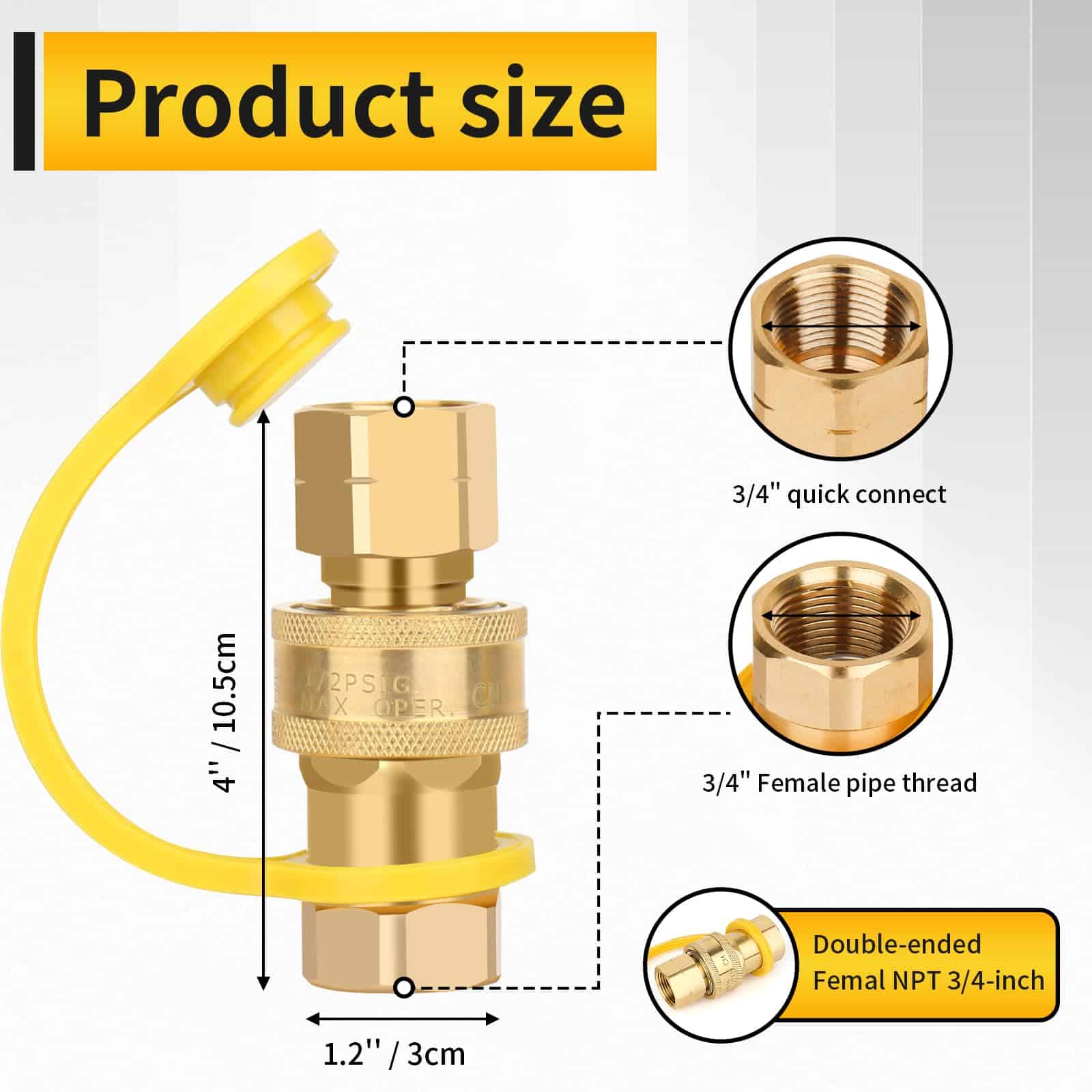 Conector Rápido de Gas de 3/4″, 2 Piezas, Conexión de Latón