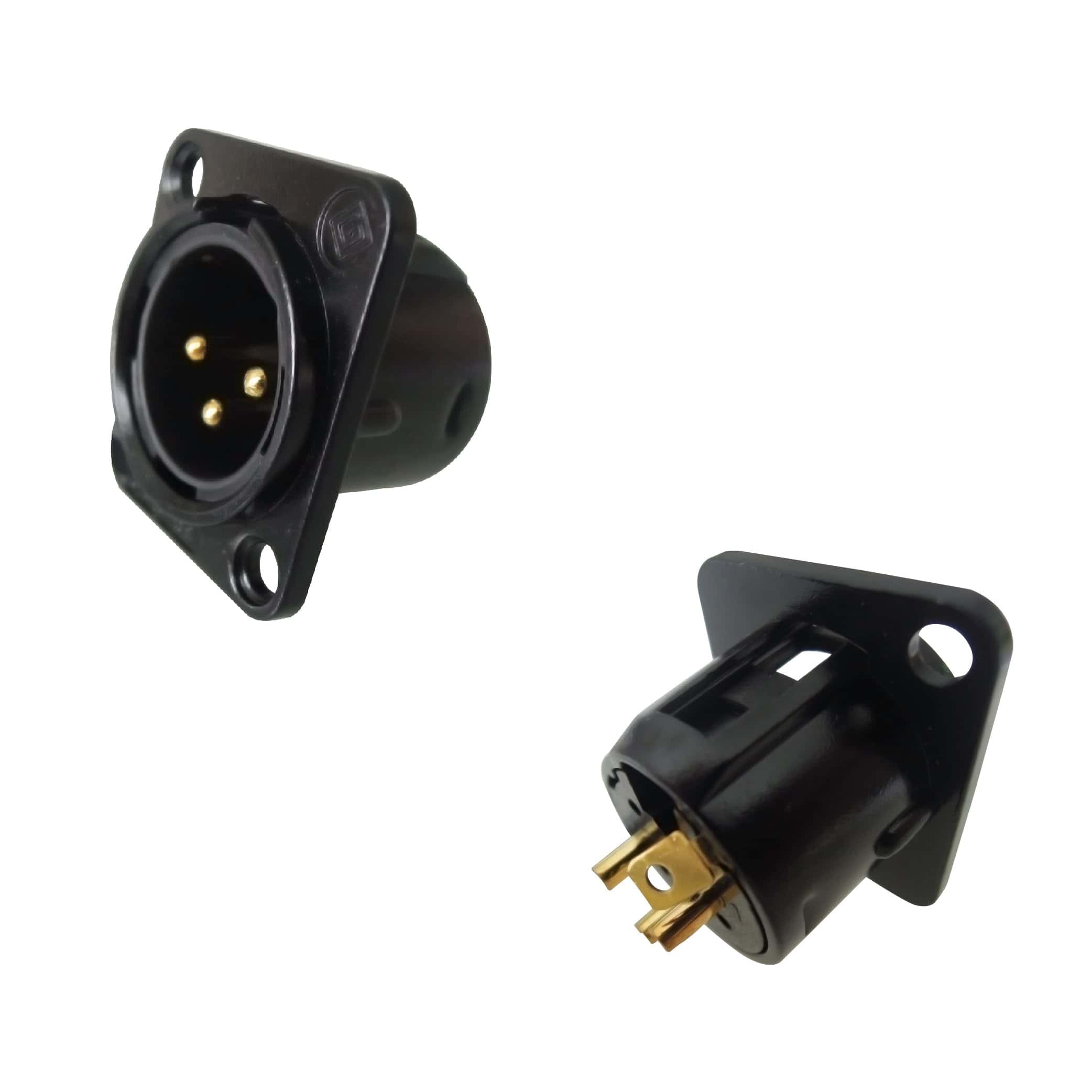 Tipo de conector: XLR 3 pines macho Proceso de tratamiento superficial: Níquel fino Contacto chapado en plata Tipo de carcasa: Panel Chaissis Modo de alimentación: transmisión de señal Voltaje de funcionamiento: 36V