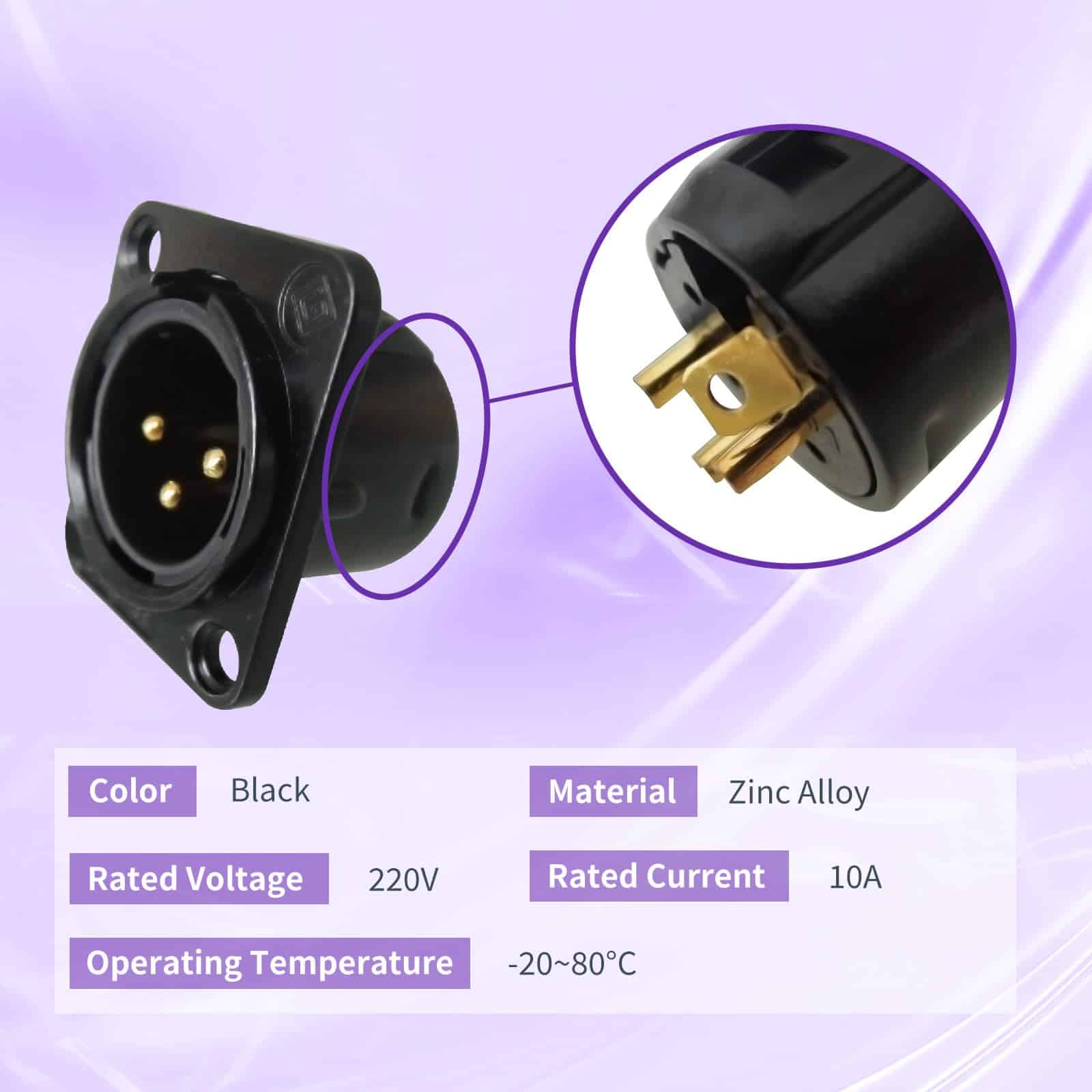 4. La estructura de la carcasa del panel con un diseño fácil de usar que permite una conexión y desconexión rápida. Se ajustan perfectamente en tomas o enchufes XLR estándar.