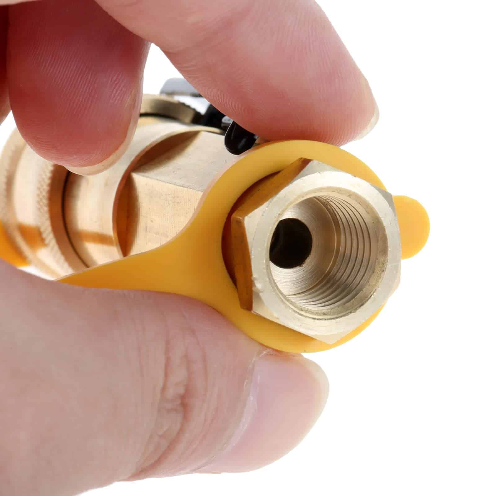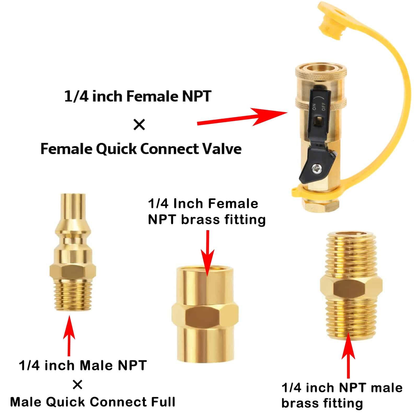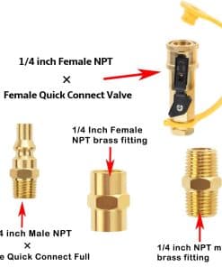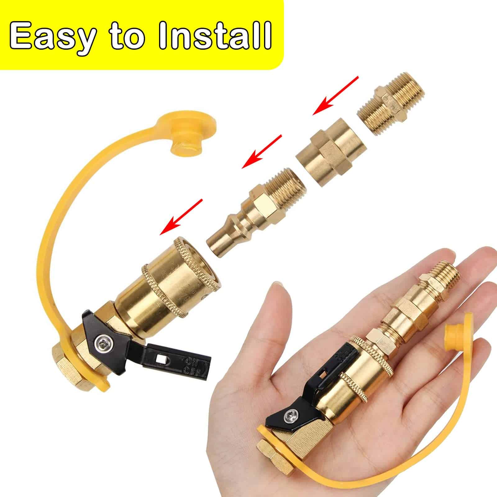 Especificaciones Tipo: Conectores Rápidos de Propano de 1/4» Aplicación: Sistema de Propano de Baja Presión Material: Latón&PTFE&PP Tamaño: Kit de Conexión Rápida de Propano de 1/4» para RV Con Válvula de Cierre: Sí Válvula: 1/4» NPT Hembra x Conexión Rápida Hembra Tapa de Flujo Completo: 1/4» NPT Macho x Conexión Rápida Macho Interruptor de Válvula de Seguridad: Hay 1 interruptor en la válvula de cierre de rosca hembra, que se puede abrir o cerrar a voluntad durante el uso. Cuando lo cierras, el gas se desconecta automáticamente. Material de Latón: Material de latón sólido de alta calidad, resistente a la corrosión, no es fácil de romper deformar, duradero. Fácil de Instalar: Adaptador para conectar a la parrilla de mesa fácil de usar, una tapa protectora podría mantenerse limpia cuando no la está utilizando, abra el interruptor negro para conectar cuando lo use. Paquete Incluido 1 x válvula de cierre para mujer, 1 x adaptador de conexión rápida para hombre, 1 x adaptador hembra de 1/4 pulgada, 1 x adaptador macho de 1/4 pulgada.