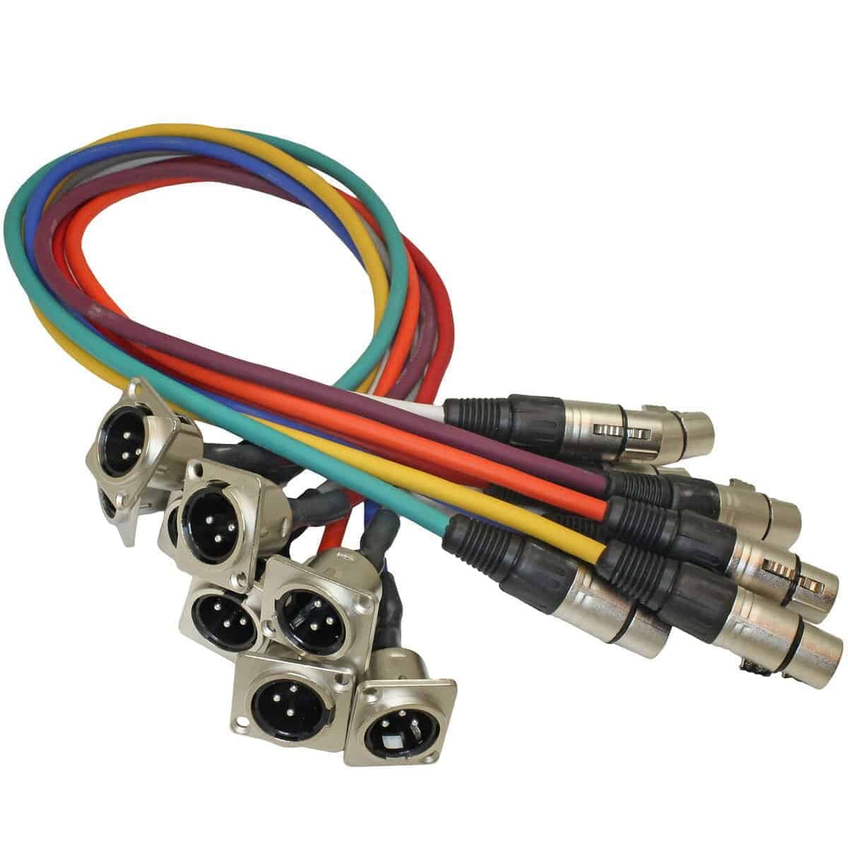 Conectores de reemplazo para montaje en panel para cajas de escenario. Conexión hembra XLR (panel) a macho XLR. El arnés de paso pasa a través y se monta en cortes estándar de la serie D permitiendo una fácil personalización de cajas de escenario y paneles de rack de audio profesional. Paquete de 8 colores para una fácil codificación de colores en su configuración personalizada. Ensamblado a mano en los Estados Unidos.