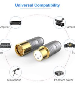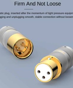Los Conectores XLR Viborg XM202G+XF202G HiFi están construidos con conductores de cobre puro 4N OFC 99.998%, lo que garantiza una excelente conductividad de la señal y minimiza la pérdida de señal. Estos conectores XLR cuentan con aislamiento de PTFE (Politetrafluoroetileno), que proporciona aislamiento eléctrico superior y ayuda a mantener la integridad de la señal de audio. La carcasa está hecha de latón con un acabado pulido y cromado, lo que proporciona durabilidad y un aspecto atractivo. Estos conectores XLR están diseñados para resistir aplicaciones de trabajo pesado y cuentan con un diseño de triple chapado, que consiste en cobre libre de oxígeno, chapado en plata y chapado en oro. Este triple chapado garantiza una conductividad óptima y resistencia a la corrosión, lo que resulta en una conexión de audio fiable y duradera.