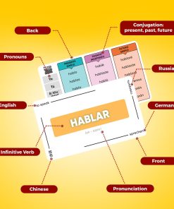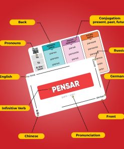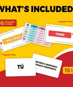 Domina los verbos en español sin esfuerzo con nuestras completas tarjetas de estudio! Con más de 200 verbos esenciales con conjugaciones en presente, pasado y futuro para una práctica exhaustiva. Formato claro y conciso con palabras codificadas por colores que mejoran la eficiencia y retención del aprendizaje. Incluye un libro digital con más de 1,000 oraciones para poner a prueba y mejorar tus habilidades. Diseñadas por hablantes nativos, profesores y estudiantes en Barcelona, estas tarjetas garantizan una experiencia de aprendizaje agradable y efectiva. ¡El regalo perfecto para estudiantes, viajeros y entusiastas de los idiomas de todos los niveles!