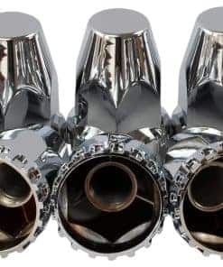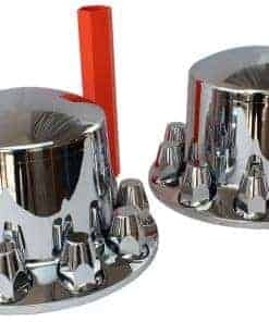 Conjunto completo de cubiertas de eje cromadas ABS MRJLK con tapacubos estándar y cubiertas de tuercas de seguridad de 33 mm para camiones semirremolques. Este conjunto de cubiertas de eje está fabricado con plástico ABS de alta calidad cromado, lo que garantiza durabilidad y resistencia. Se adapta a la mayoría de las ruedas con 10 orificios de 20, 22,5 y 24,5 pulgadas, con un círculo de perno de 11,25 pulgadas. Incluye 2 cubiertas de eje trasero, 20 tapas de tuerca de seguridad de 33 mm y una herramienta de instalación para una fácil colocación. La capucha es removible para facilitar la inspección. Este conjunto se vende por juego y es de la marca MRJLK, ofreciendo calidad y innovación para camiones semirremolques.