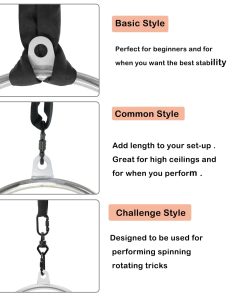 Las lyras de doble punto permiten menos movimiento general, pero también permiten realizar una mayor variedad de posturas en la barra superior. Sin embargo, debido al método de montaje, ocupan más espacio vertical.