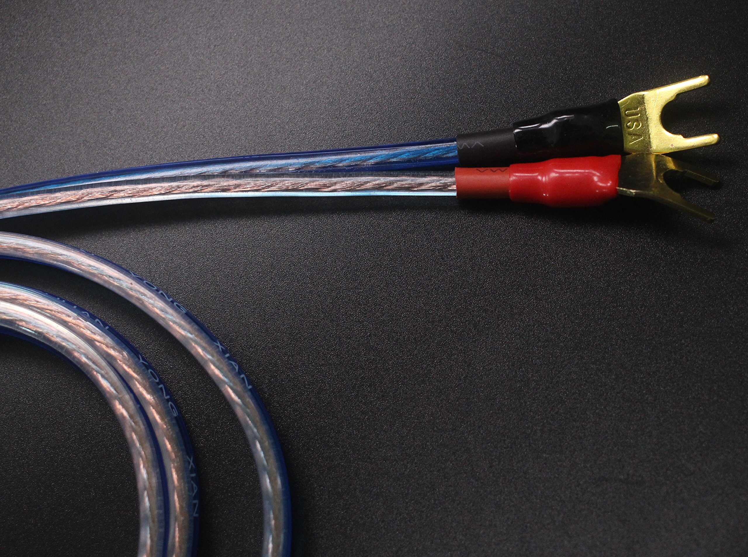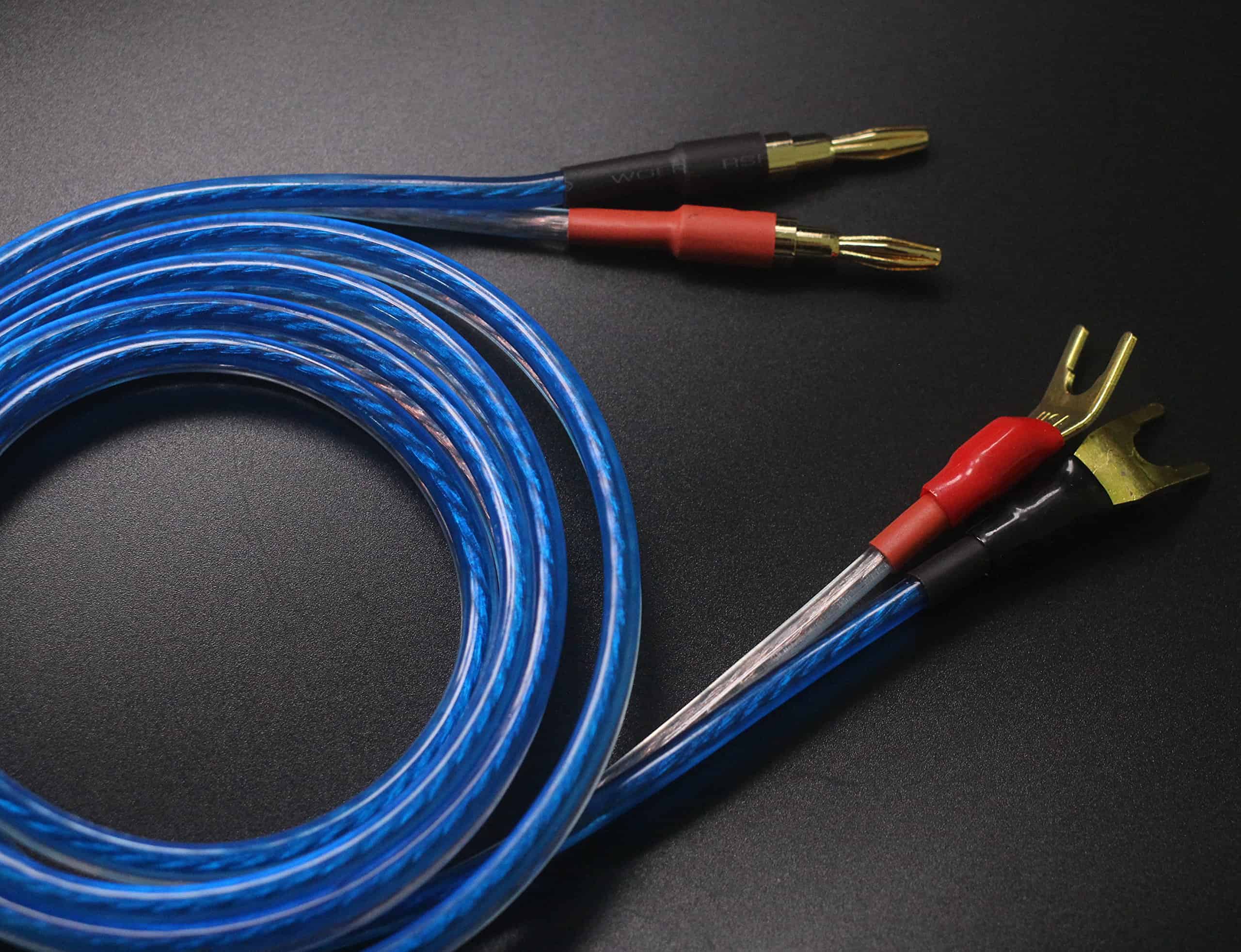 Conjunto de 1 par (4 enchufes de pala y 4 enchufes tipo banana). Conectores bañados en oro de 24k. Longitud del cable: 1.5M(4.92ft). Fabricado con material de alta calidad y respetuoso con el medio ambiente. Empaque sencillo.