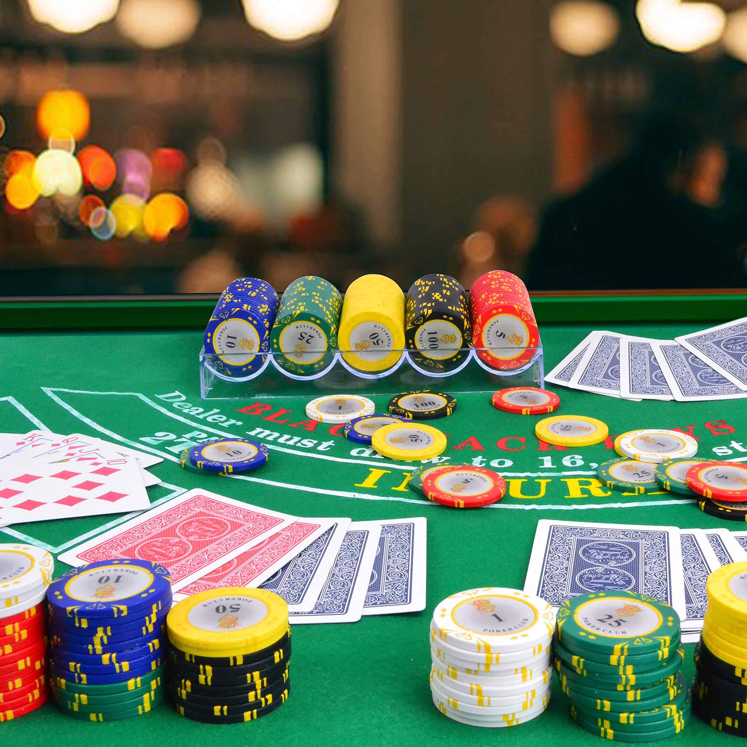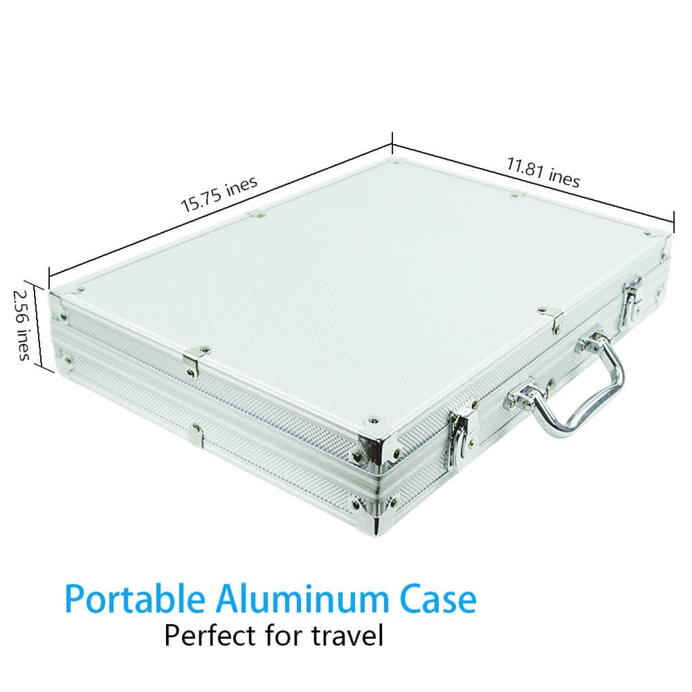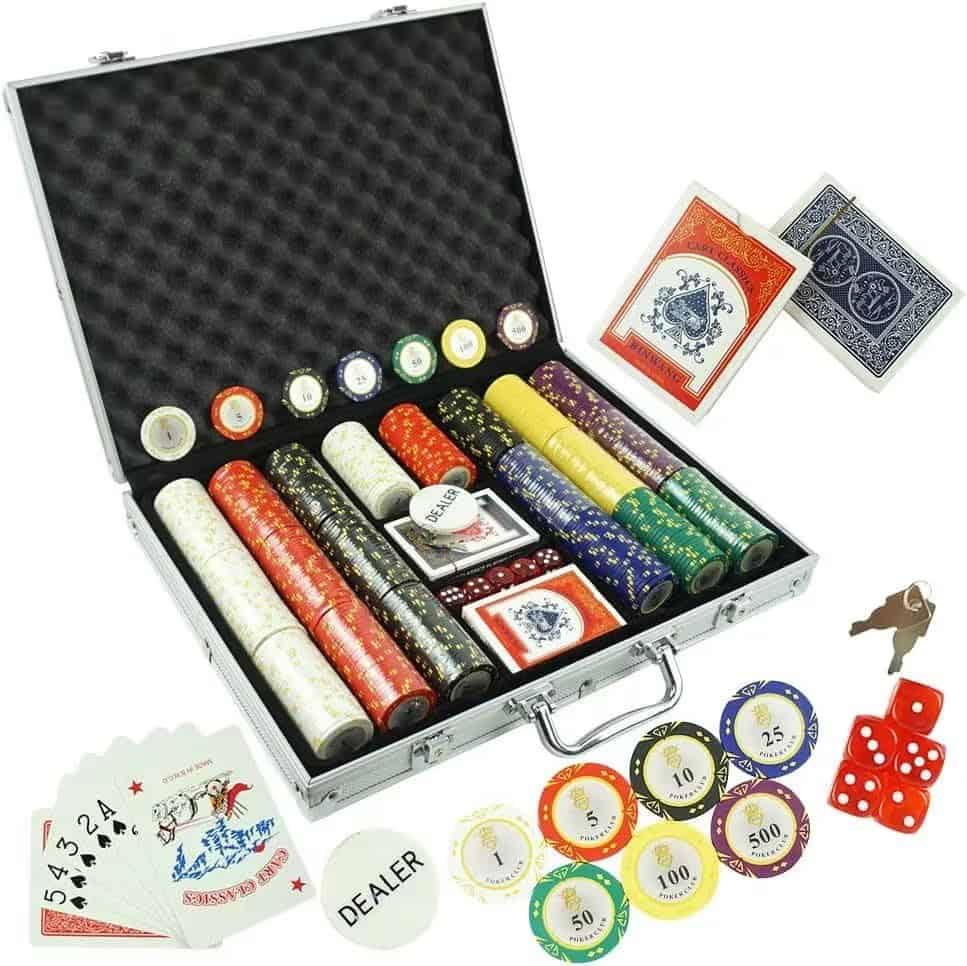 DISEÑO MODERNO Y CLÁSICO.Las fichas de poker están hechas de resina compuesta con inserto pesado para ofrecer fichas de poker de arcilla de calidad de casino perfectas. Hay detalles de patrones exquisitos y un excelente tacto de calidad para satisfacer los requisitos de los clientes de un producto profesional y de alta calidad. DISFRUTA DE LA DIVERSIÓN DE LAS FICHASEl juego de fichas clásicas es ideal para Texas Holdem, Blackjack, torneos, clubes de cartas, etc. Puedes disfrutarlo con tus amigos y familia en fiestas hasta altas horas de la noche. Y es una buena opción de regalo para niños y adultos en cumpleaños, Día del Niño, Navidad y otras festividades. DETALLES DE LAS FICHAS DE POKERCada ficha de poker diámetro: 1.54 pulgadas Cada ficha de poker Peso: 13.5 gramos Tamaño del paquete: 11.7 x 9.1 x 2.67 pulgadas MALETÍN DE ALUMINIO CONVENIENTEGracias al maletín de aluminio, este conjunto de fichas de poker se puede jugar tanto en interiores como en exteriores y mantener las fichas lejos del desgaste y rotura, ¡haciendo que sea fácil viajar a cualquier lugar! EMBALAJE ANTICHOCPara asegurarse de que los productos lleguen de forma segura a usted, nuestro conjunto de fichas actualiza el embalaje de espuma para reducir de manera efectiva el daño durante el envío. DAÑO POR TRANSPORTEHacemos todo lo posible para asegurar que su pedido le llegue en perfectas condiciones, sin embargo, si su pedido llega dañado o tiene algún fallo, la forma más rápida de resolver esto sería enviar un correo electrónico a nuestro equipo
