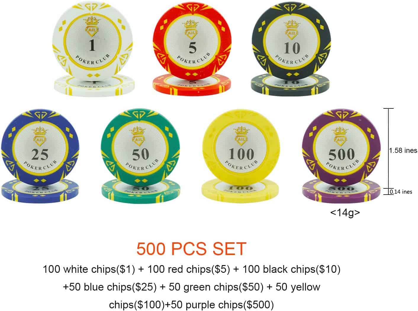 Conjunto de 14 Gramos de Fichas de Poker KAILE para Texas