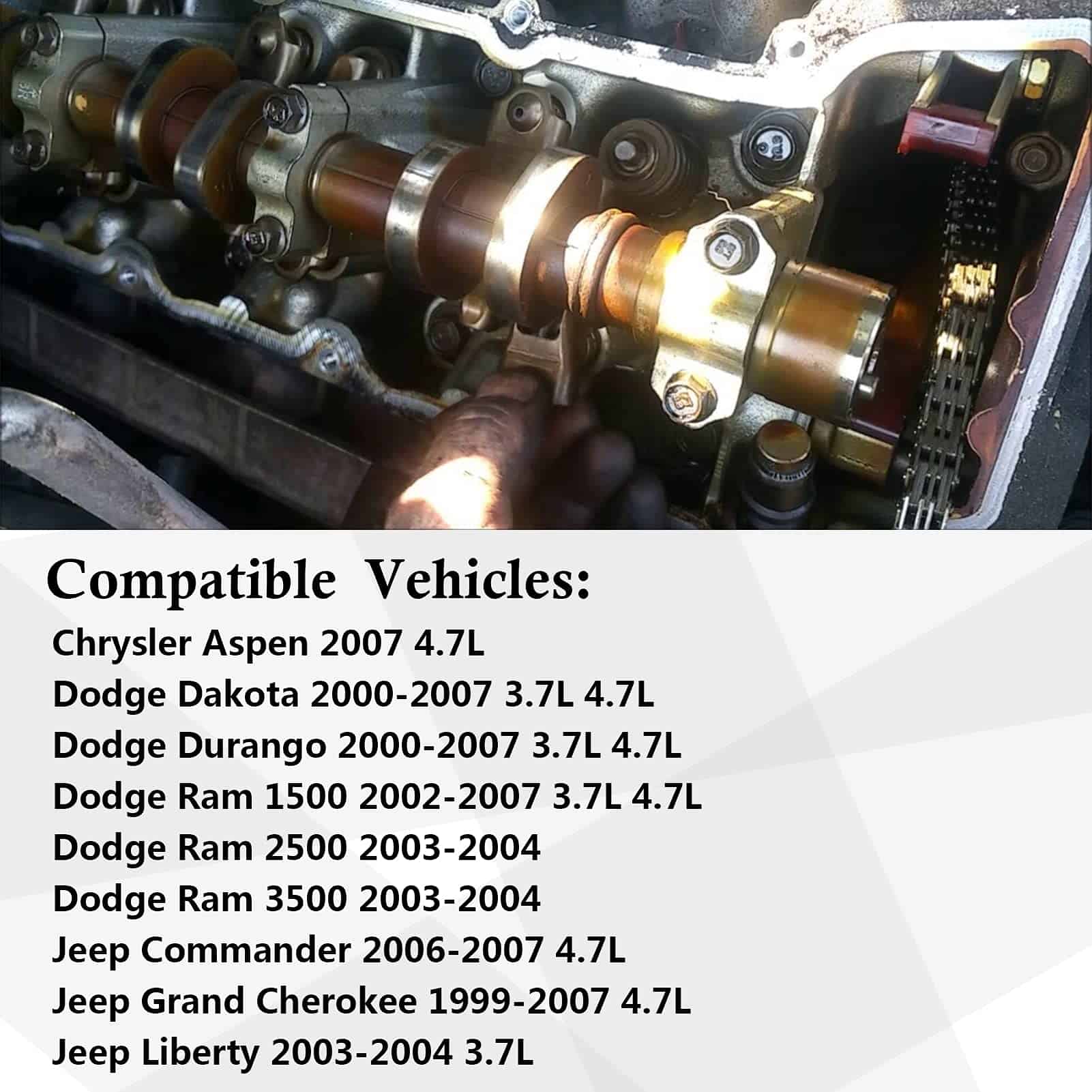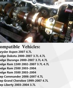 1. Consulte la compatibilidad para asegurarse de que esta parte se ajuste a su vehículo antes de comprar. Esta parte es compatible con Chrys-ler Aspen 2007 4.7L, Dakota 2000-2007 3.7L 4.7L, Durango 2000-2007 3.7L 4.7L, Ram 1500 2002-2007 3.7L 4.7L, Ram 2500 2003-2004, Ram 3500 2003-2004, Commander 2006-2007 4.7L, Grand Cherokee 1999-2007 4.7L, Liberty 2003-2004 3.7L.