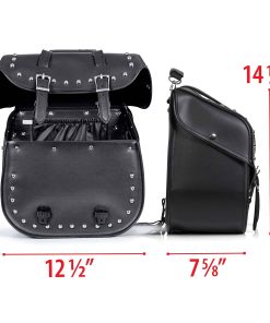 Increíble diseño y construcción duradera se combinan para crear una impresionante alforja impermeable para motocicleta. El conjunto de 2 alforjas para motocicleta Diamond Plate hecho de PVC resistente al agua te preparará para montar. Las tachuelas de acento brillan en complemento con el color negro de las alforjas. Esta solución de equipaje para motocicleta asequible cuenta con aberturas convenientes en la parte superior para un acceso inmediato a tus pertenencias. Diseñadas para un almacenamiento máximo y usabilidad, con lo último en protección impermeable. Cada bolsa cuenta con correas de hebilla para máxima protección y seguridad del contenido de la alforja. Ambas bolsas miden 14 1/2 pulgadas x 13 1/2 pulgadas x 8 pulgadas. Una gran adición a tu motocicleta.
