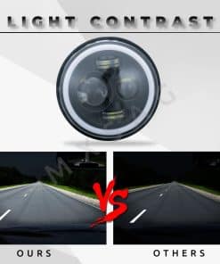 4. MAYOR BRILLO–El faro redondo tiene chips avanzados de alta calidad que proporcionan luz concentrada y de alta luminosidad, Patrón de luz baja-proporciona un amplio haz de iluminación general y permanece iluminado todo el tiempo, Patrón de luz alta-agrega luz enfocada desde la sección inferior para agregar potencia en el centro de la carretera, puedes disfrutar de una conducción segura con el faro redondo de 7 pulgadas.