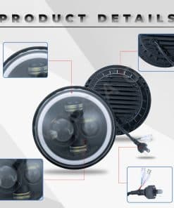 1. MATERIAL PREMIUM CON ESTRUCTURA DE DISEÑO ESPECIAL El faro redondo para Jeep Wrangler y otros modelos está hecho de material premium con una estructura de diseño especial, que tiene un área aumentada para una mejor disipación del calor, el aluminio IP67 es lo suficientemente resistente para resistir al agua y a los golpes.