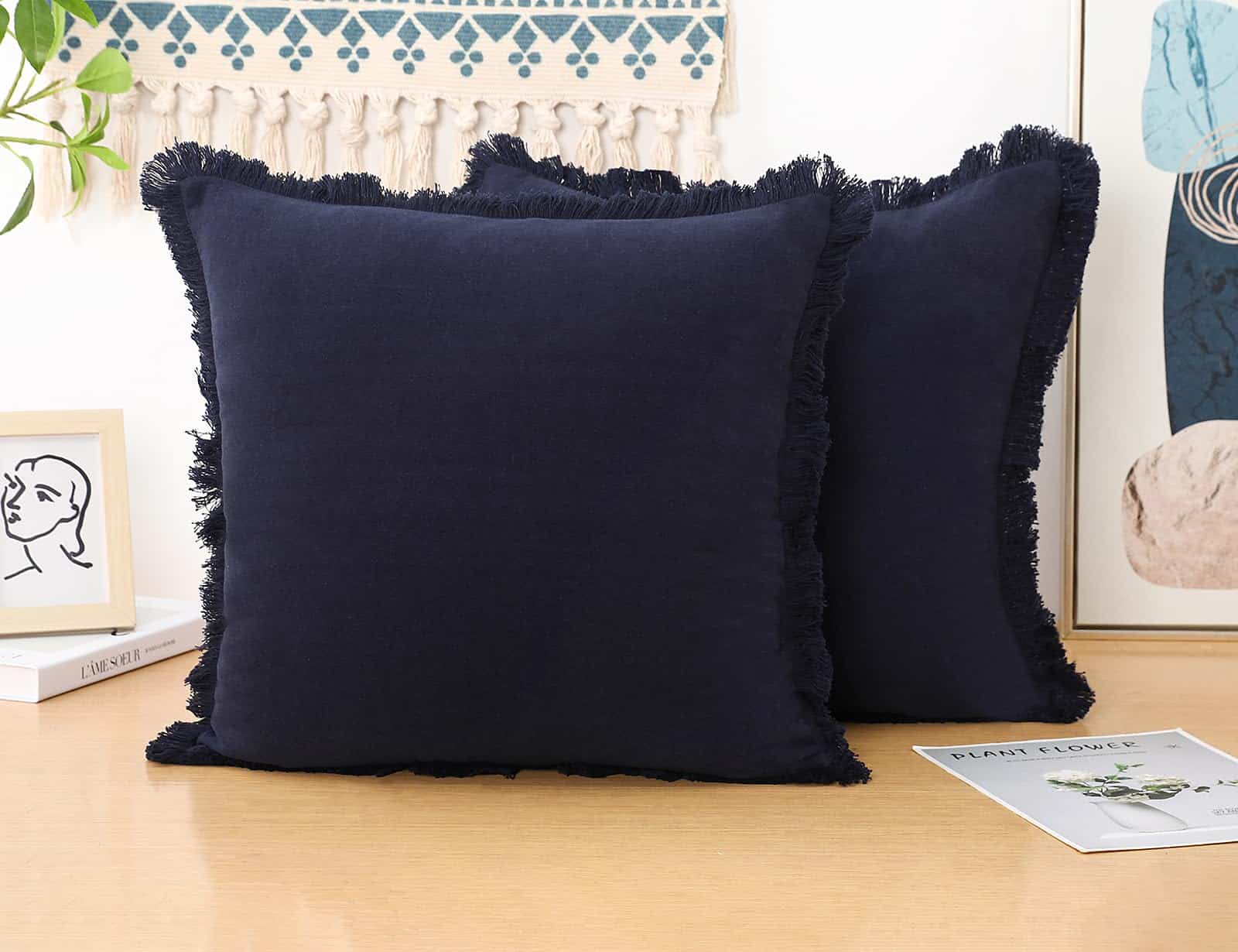 Conjunto de 2 Fundas de Almohada con Flecos de Lino