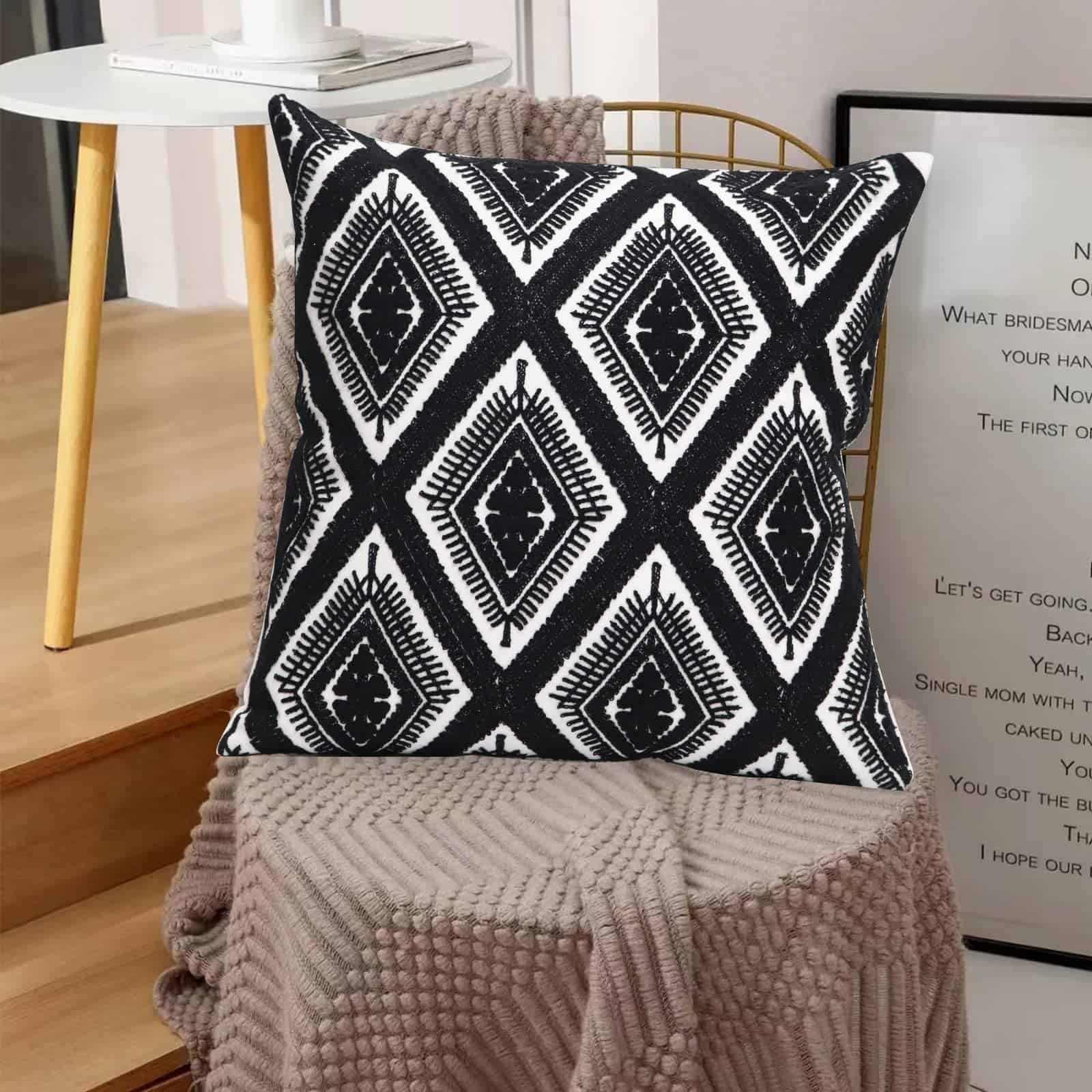4. Material: Nuestras Fundas de Cojín de Patio Boho están Hechas de Resistente Lona de Algodón, que es Resistente, Transpirable y Cómoda.