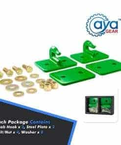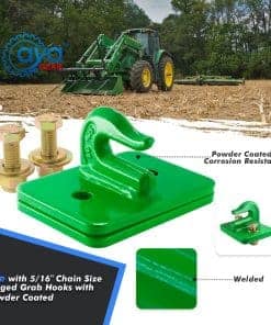 Los ganchos forjados con clasificación G70 de AYA GEAR están soldados a una placa de 1/4″ e incluyen tuercas de Grado 8. Estos son perfectos para usar con cadenas G70 que comúnmente se utilizan con tractores compactos de servicios públicos de tamaño pequeño a mediano e tractores compactos de servicios públicos. Estos ganchos de agarre con perno son galvanizados para evitar la oxidación.