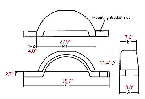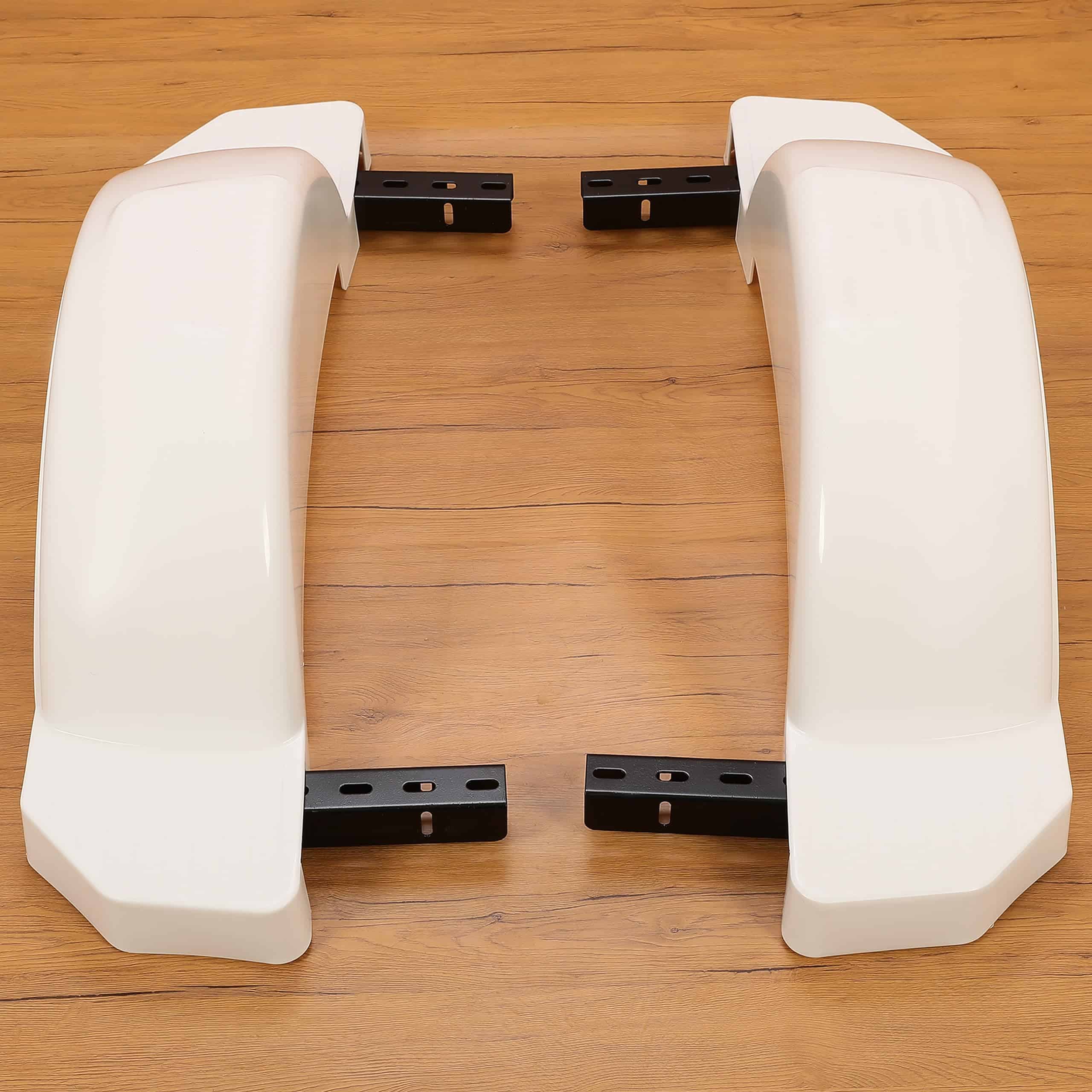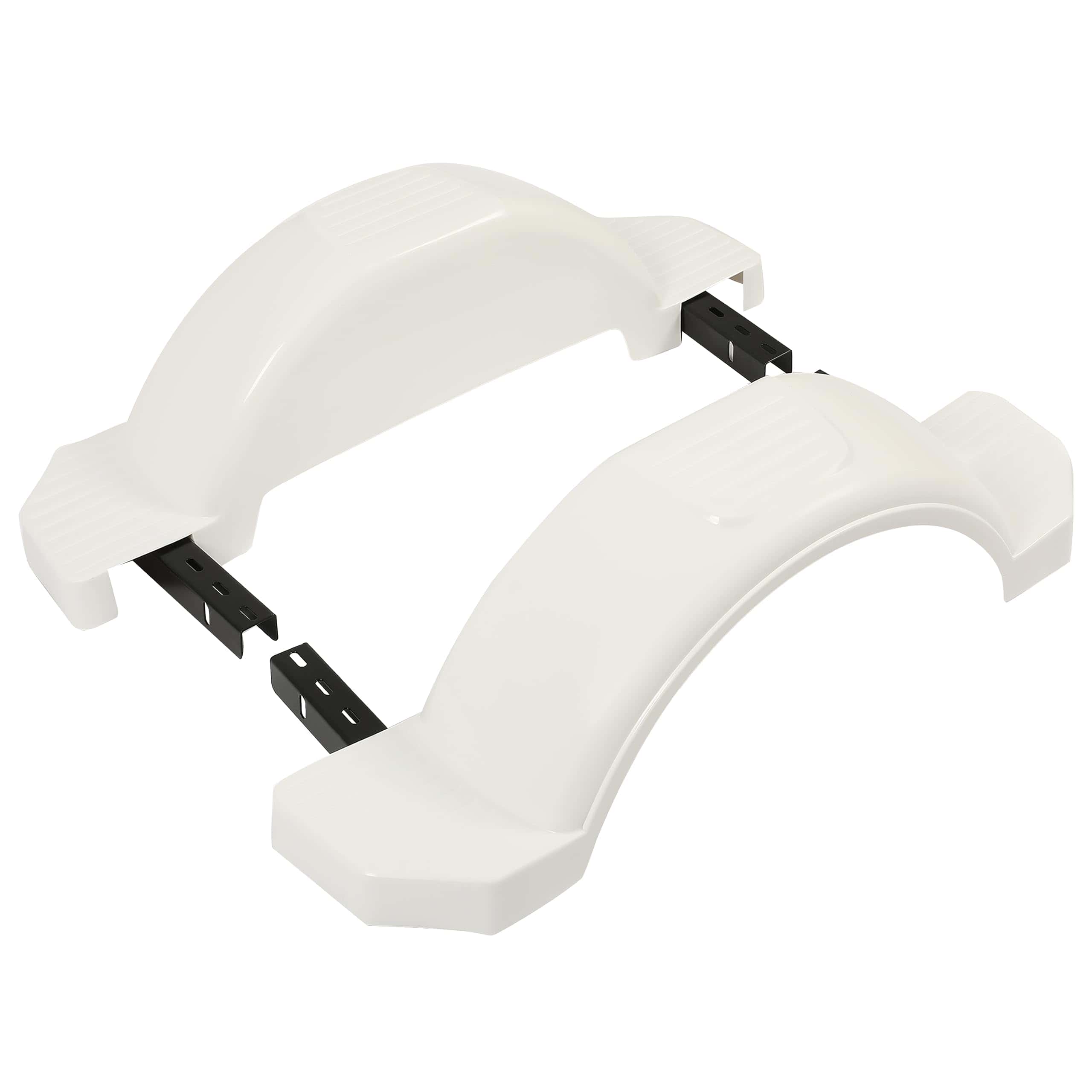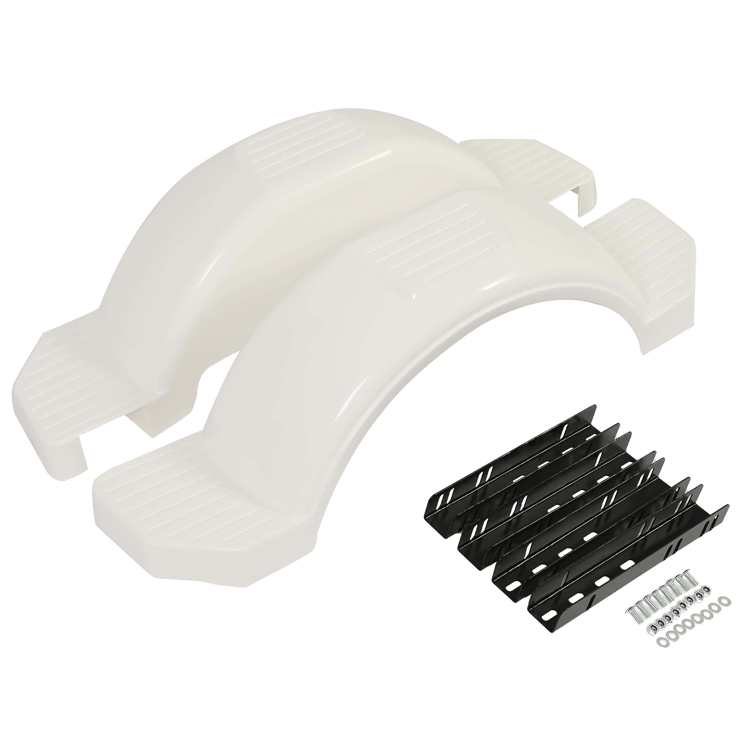 Conjunto de 2 guardafangos para remolques de eje único con ruedas de 13″ de diámetro. Fabricados en polietileno de alta densidad (HDPE) y moldeados por inyección para resistencia a impactos, rayones y protección UV. Dimensiones: 39.7″ de largo x 8.8″ de ancho x 11.4″ de alto. Capacidad máxima: 300 lbs.