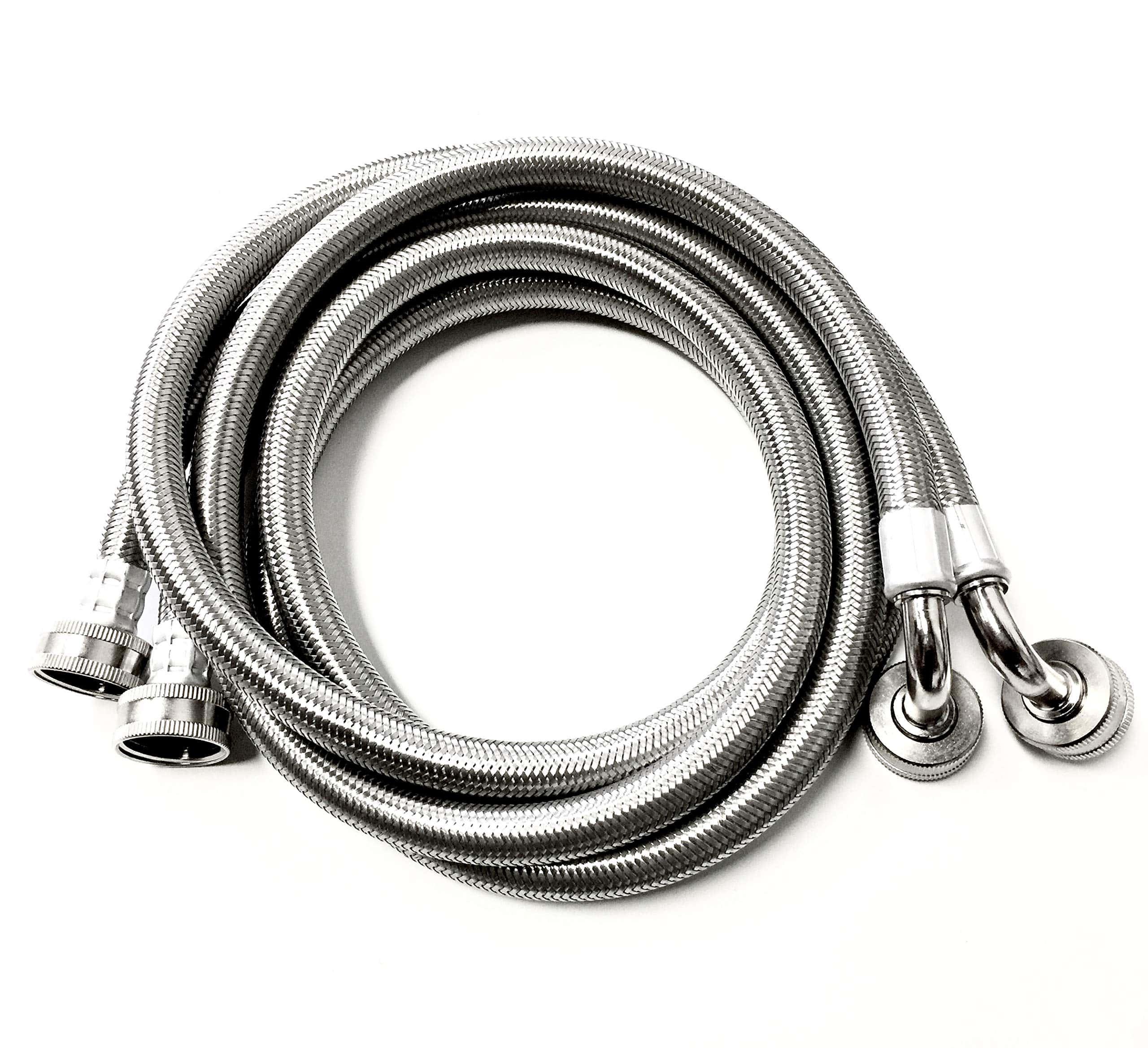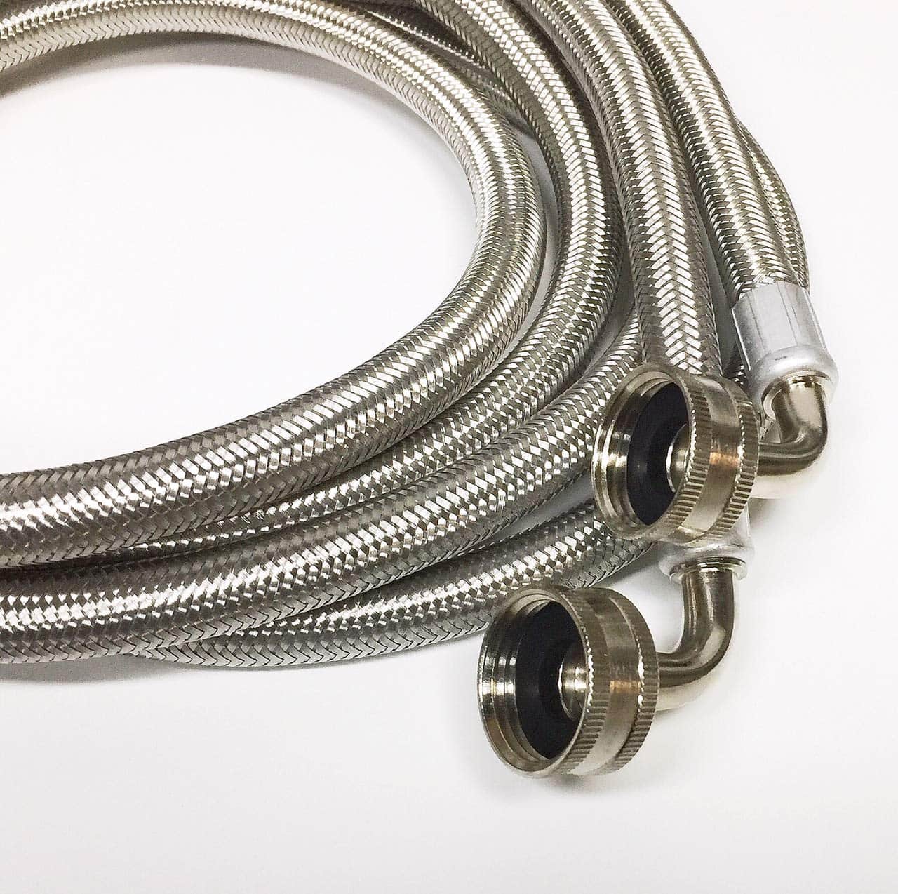 Dos capas de núcleo de PVC con nylon reforzado en medio y cubierta exterior trenzada de acero inoxidable 304 para aplicaciones de suministro de agua de alto rendimiento y duradero. Conector universal que se adapta a todas las lavadoras. Cumplen con los siguientes estándares: ASME A112.18.6-2017/CSA B125.6-17, NSF/ANSI 61,372. Mientras que la presión típica de suministro de agua oscila entre 50 y 80 psi, nuestras mangueras están clasificadas para 290 psi con una resistencia a la explosión de hasta 1500 psi. Rangos de temperatura de trabajo de -40 a 210F. Viene con una garantía de 10 años por problemas de calidad para mayor tranquilidad.