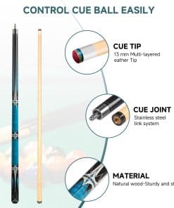 1. Estilo de Diseño: Palo de billar – Cada palo de billar tiene una longitud de 57 pulgadas. La superficie del cuerpo del palo es plana y suave, con una punta de 13 mm – Cabezal de piel de vaca de 4 capas, los palos de billar 2-Pack 19/20 oz son adecuados para jugadores de competencia profesionales. 2. Ampliamente utilizado: Este palo de billar tiene una gran sensación en la mano, muy amigable para un agarre firme. El tope tiene un tope de goma negro que no dañará fácilmente el palo cuando lo coloque en posición vertical en el suelo. 3. Alta calidad: Estos palos de billar tienen conos profesionales, disparos precisos y rectos, ¡igual que los palos más caros! Incluso los jugadores avanzados quedan impresionados con la precisión y el control que se proporciona, por lo que puedes estar seguro de que obtendrás mucho por tu dinero. 4. Material Premium: Los palos de billar están hechos de madera de arce, acabados con pintura mate. Presentan un diseño de palo de billar de dos piezas para facilitar el transporte y el almacenamiento. 5. Postventa sin preocupaciones: Nuestros palos de billar ofrecen una garantía de devolución de 30 días y de devolución de dinero. Soporte de servicio al cliente las 24 horas, por favor contáctenos mediante mensaje de pedido.