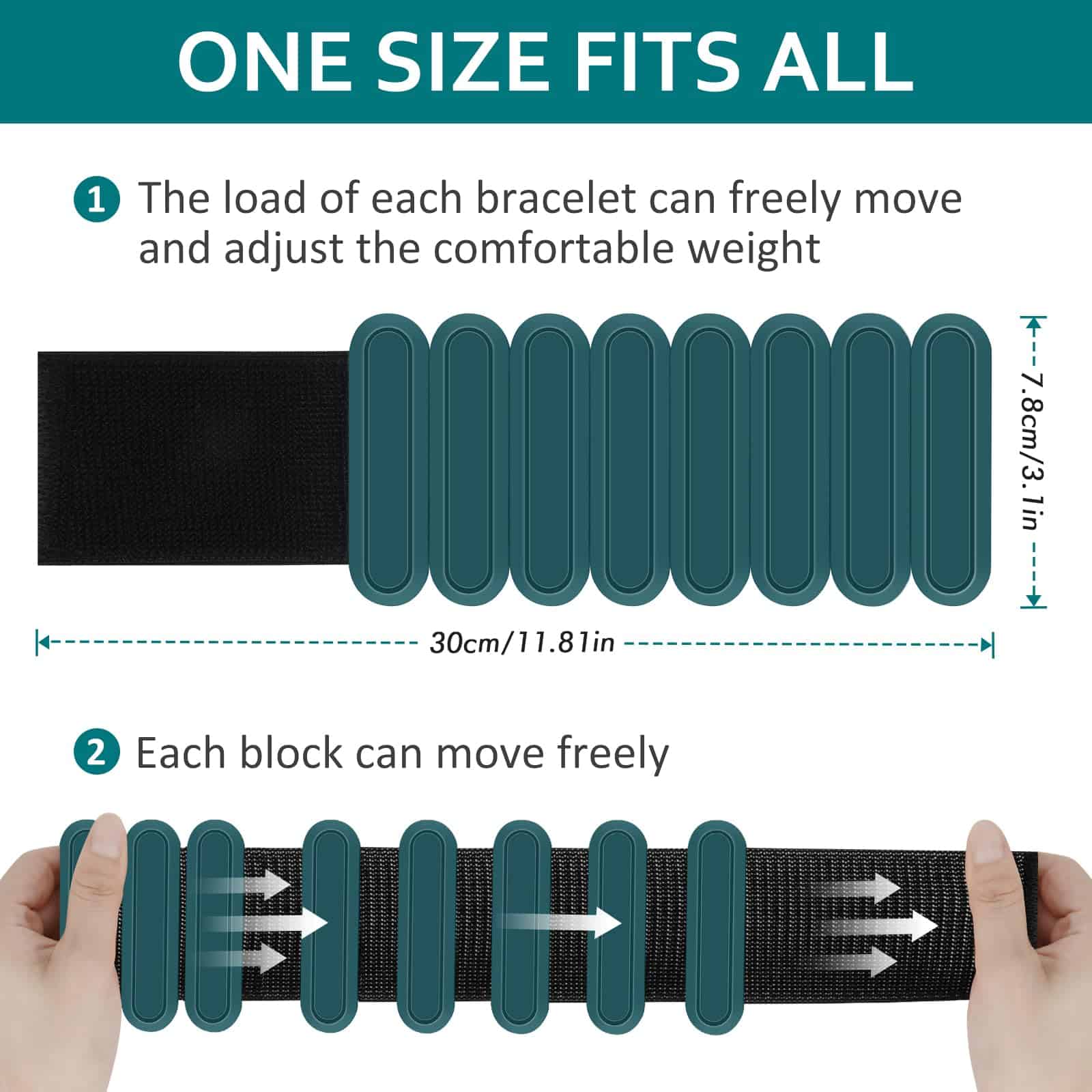 Conjunto de brazaletes de peso de muñeca que incluye 2 brazaletes de peso de silicona ajustables, el tamaño de la longitud x ancho del peso de muñeca es de 30 cm x 7.8 cm, 1 libra de peso para cada uno y es ideal para mujeres que buscan hacer ejercicio básico en la vida diaria. Estos brazaletes están hechos de silicona suave y cómoda, a prueba de sudor, a prueba de olores, antideslizantes. El diseño circular los hace flexibles y la textura circular es antideslizante. El material de acero inoxidable en el interior garantiza suficiente carga de ejercicio bajo la premisa de flexibilidad. Cada carga circular puede moverse libremente, permitiéndote ajustar el peso de los brazaletes para una mejor comodidad. Puedes quitar una sección de carga para crear un ajuste mejorado, haciéndote más cómodo para disfrutar del deporte. Además, cuenta con cinta de velcro ultra fuerte en ambos lados, cinturón elástico deportivo totalmente ajustable, materiales de alta calidad que garantizan una larga vida útil, durabilidad y resistencia al desgaste. Perfecta elección para mejorar la resistencia muscular, para actividades como yoga, correr, caminar, fitness, natación, aeróbicos, pilates, viajes, ejercicios interiores y exteriores, entrenamiento de núcleo y más. Mejora la efectividad del ejercicio y ayuda a prevenir lesiones en las articulaciones de las manos y los pies, aliviando el dolor causado por el trabajo repetitivo. ¡Haz que tu cuerpo sea más saludable y mejor con estos brazaletes de peso para muñecas!