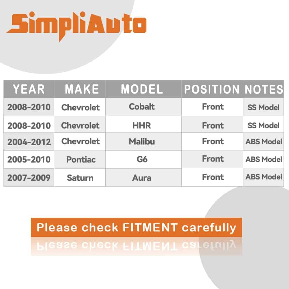 1. AJUSTE CONFIRMADO: 513214 Conjunto de Cubo de Rodamiento de Rueda Delantera con ABS compatible con Chevy Cobalt 2008-2010 {Modelos SS solamente con ABS}; Chevy HHR 2008-2010 {Modelos SS solamente con ABS}; Chevy Malibu 2004-2012 {ABS de 4 ruedas; Excluye Malibu Classic}, Pontiac G6 2005-2010 {ABS de 4 ruedas}, Saturn Aura 2007-2009 {ABS de 4 ruedas}.