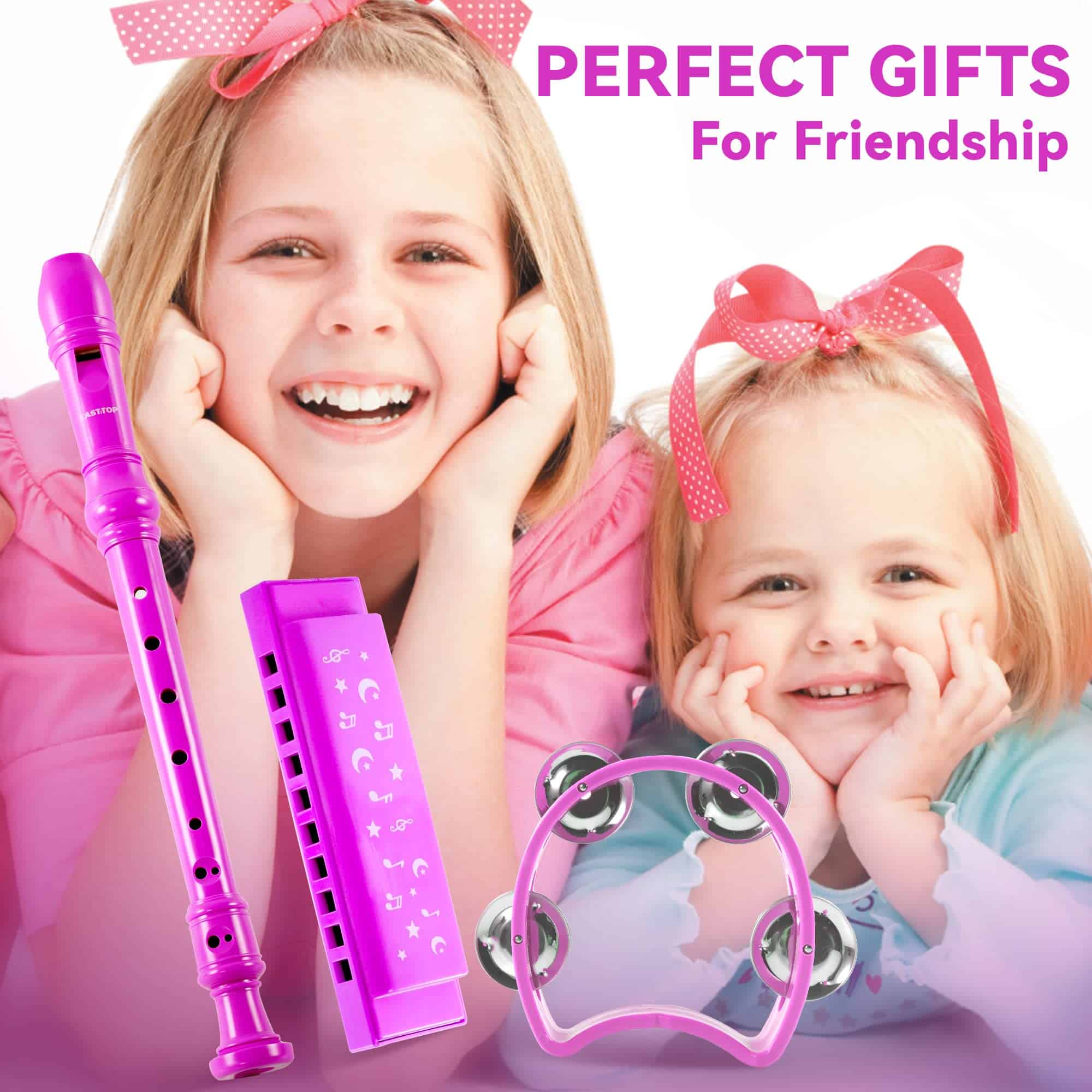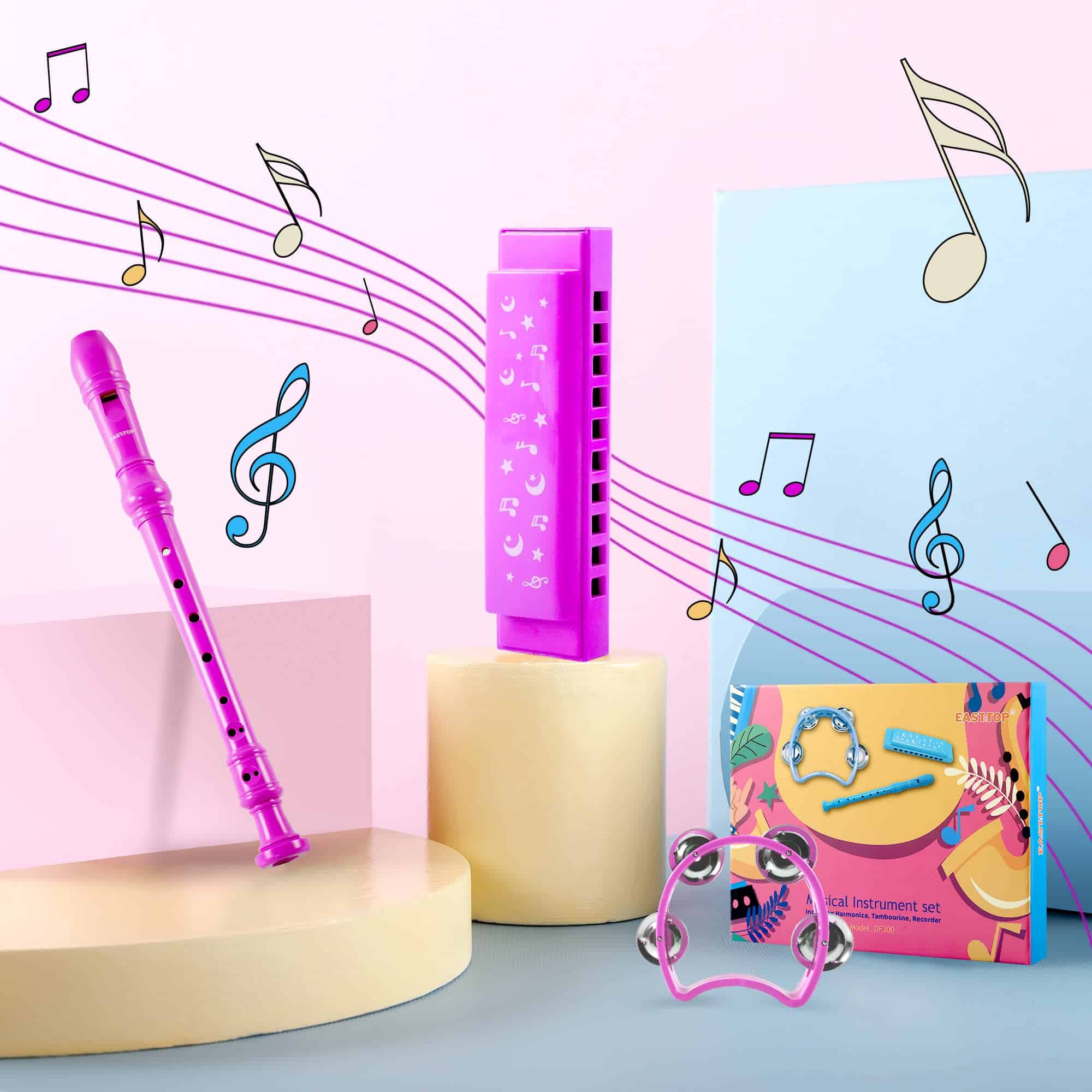 Conjunto de 3 piezas de armónica y flauta y campana de mano para niños y niñas, Educación preescolar Instrumentos musicales tempranos de aprendizaje para niños y niñas. El color rosa de la armónica, flauta y mini pandereta, Soprano Recorder 8 Hole, Flautas en clave de Do para niños, regalo para niños, regalo para niñas. Puede tocarse juntos en familia, como padre tocando la armónica, madre tocando la pandereta, niños tocando la flauta. Fácil de llevar: Tamaño del estuche: (10.43×8.26×1.37)» / (265x210x35) mm (L x W x H), se puede poner en tu bolso, se puede tocar en todas partes, como fiesta, escuela, oficina y viaje, etc. El color azul de la armónica, flauta y mini pandereta. Empaque hermoso: Cada set (armónica, flauta y pandereta) viene en una caja de cartón duro. El empaque es exquisitamente de lujo y se puede usar como regalo de cumpleaños, regalo para seguir estudiando, recuerdo de vacaciones o un regalo para reuniones de negocios y aniversarios de bodas, etc. El paquete incluye 1x armónica (en clave de Do), 1x flauta de plástico de 8 agujeros, 1x mini pandereta y 1x estuche de regalo de cartón duro. Somos el fabricante de la marca East top. Respaldado con la garantía de devolución de dinero sin condiciones de 30 días de East top. Puede comprar nuestros productos con total confianza.