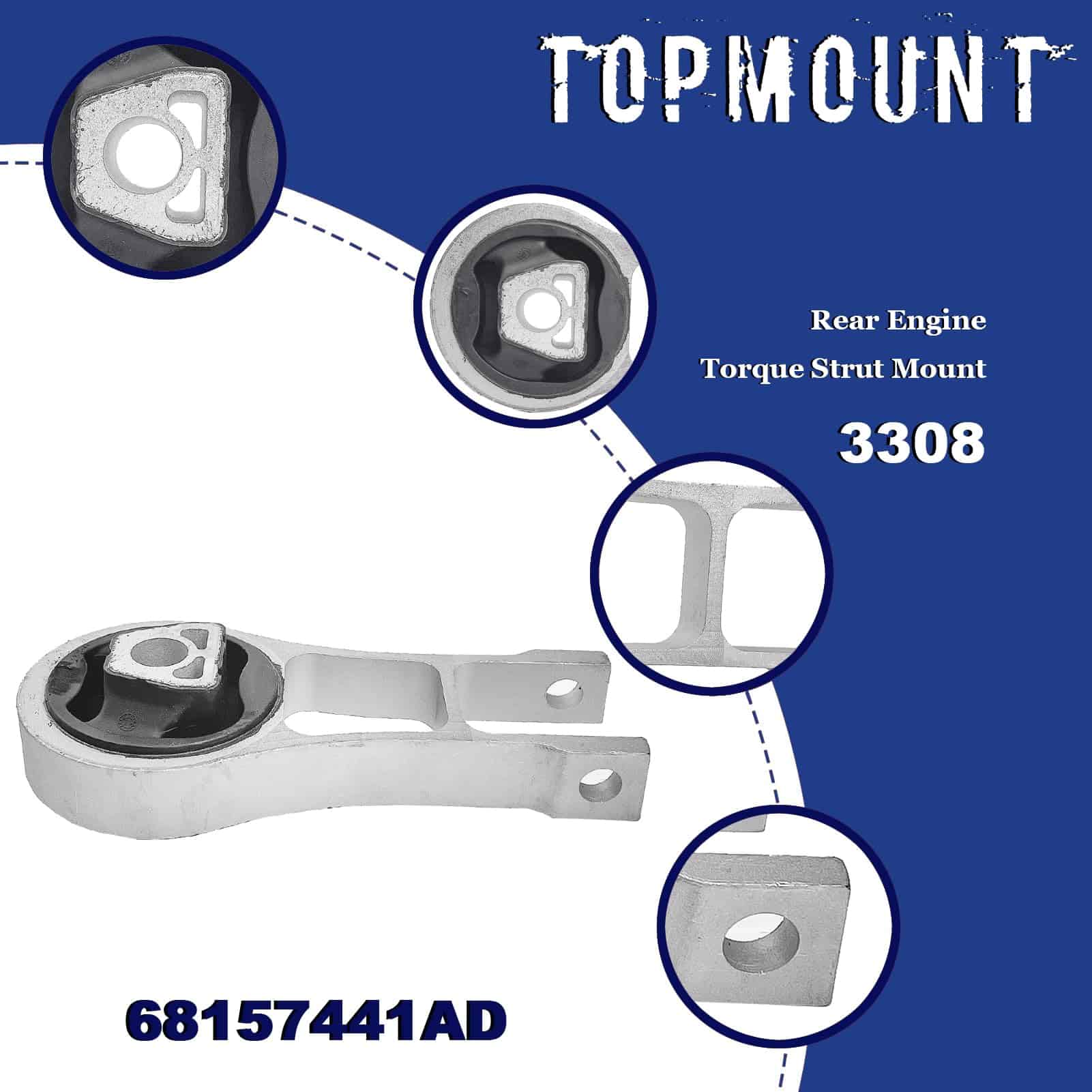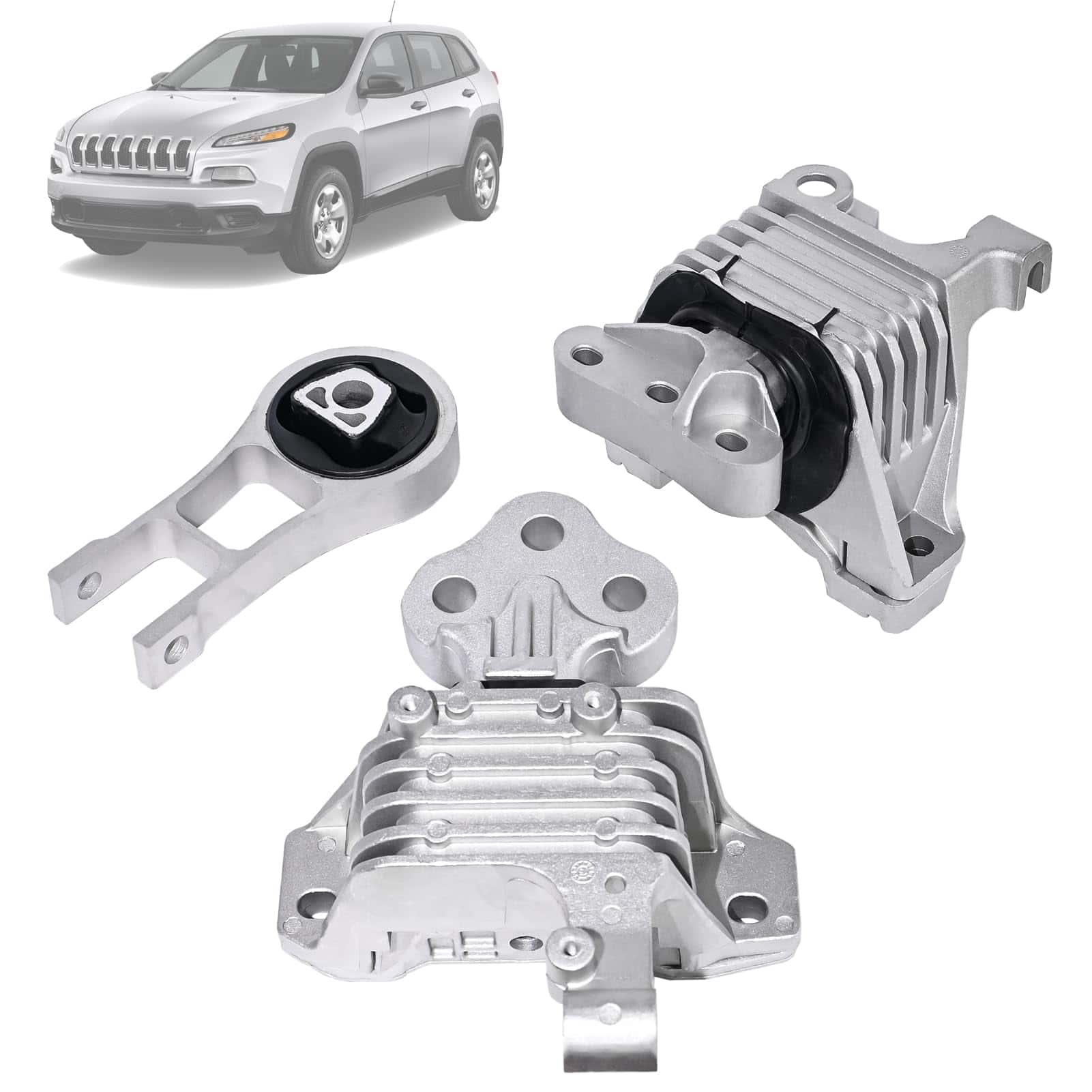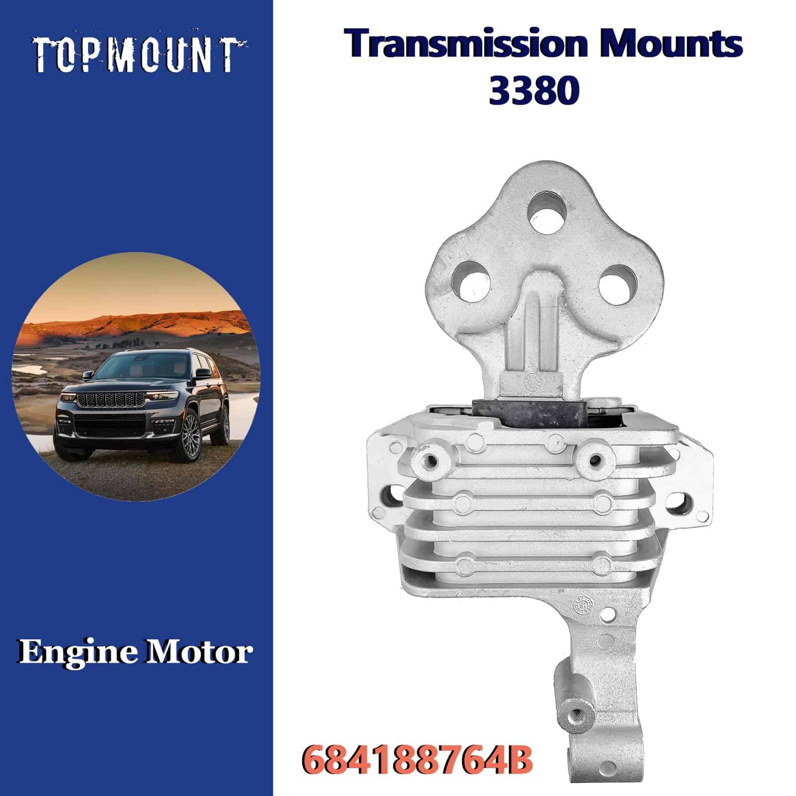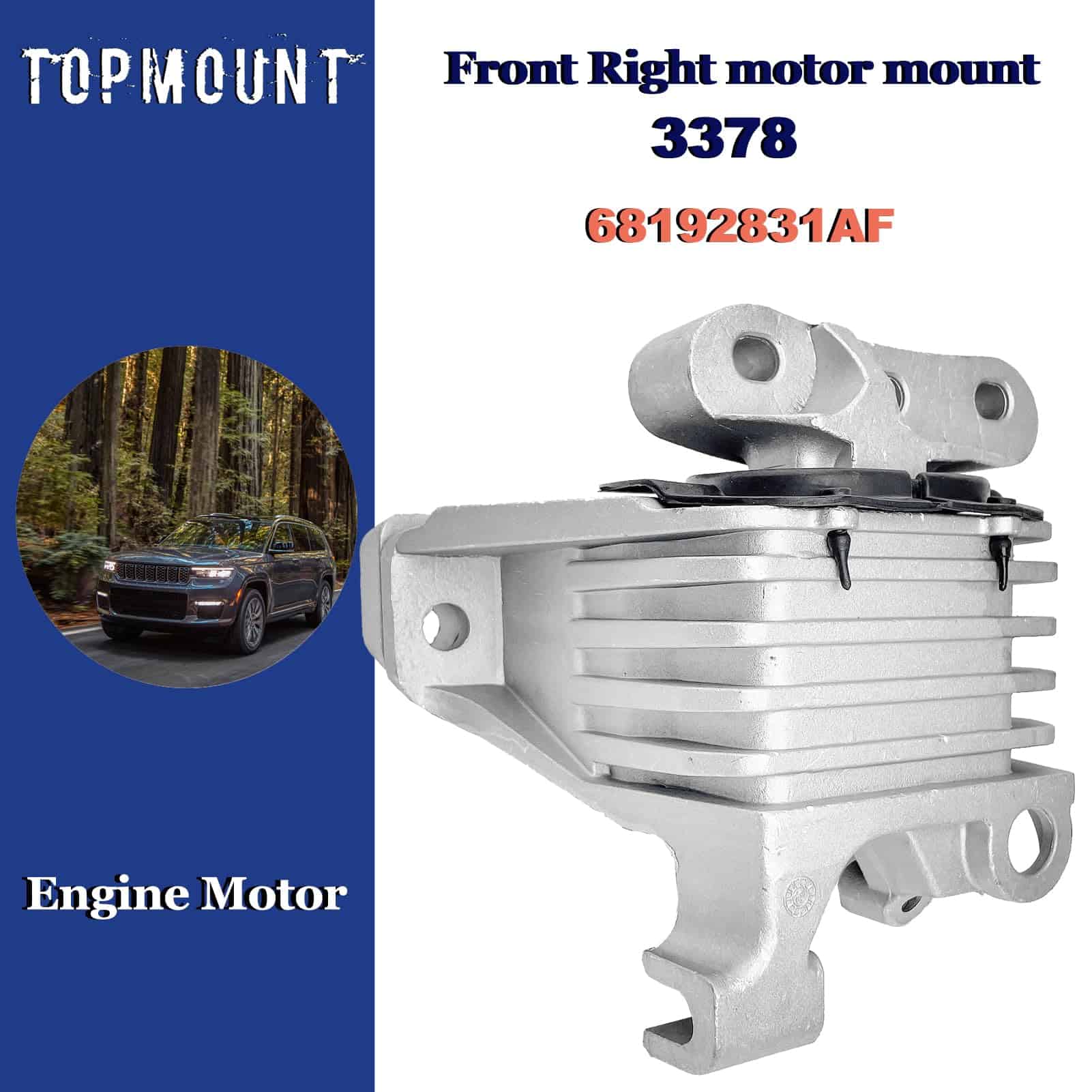 2. Números de pieza de repuesto: Este conjunto de soportes de motor incluye 1 x 3378 (soporte de motor hidráulico delantero derecho), 1 x 3380 (soporte de transmisión hidráulico) y 1 x 3308 (soporte de torsión del motor trasero). Estas piezas reemplazan los números OEM 68192831AF, 68418876AB y 68157441AD.
