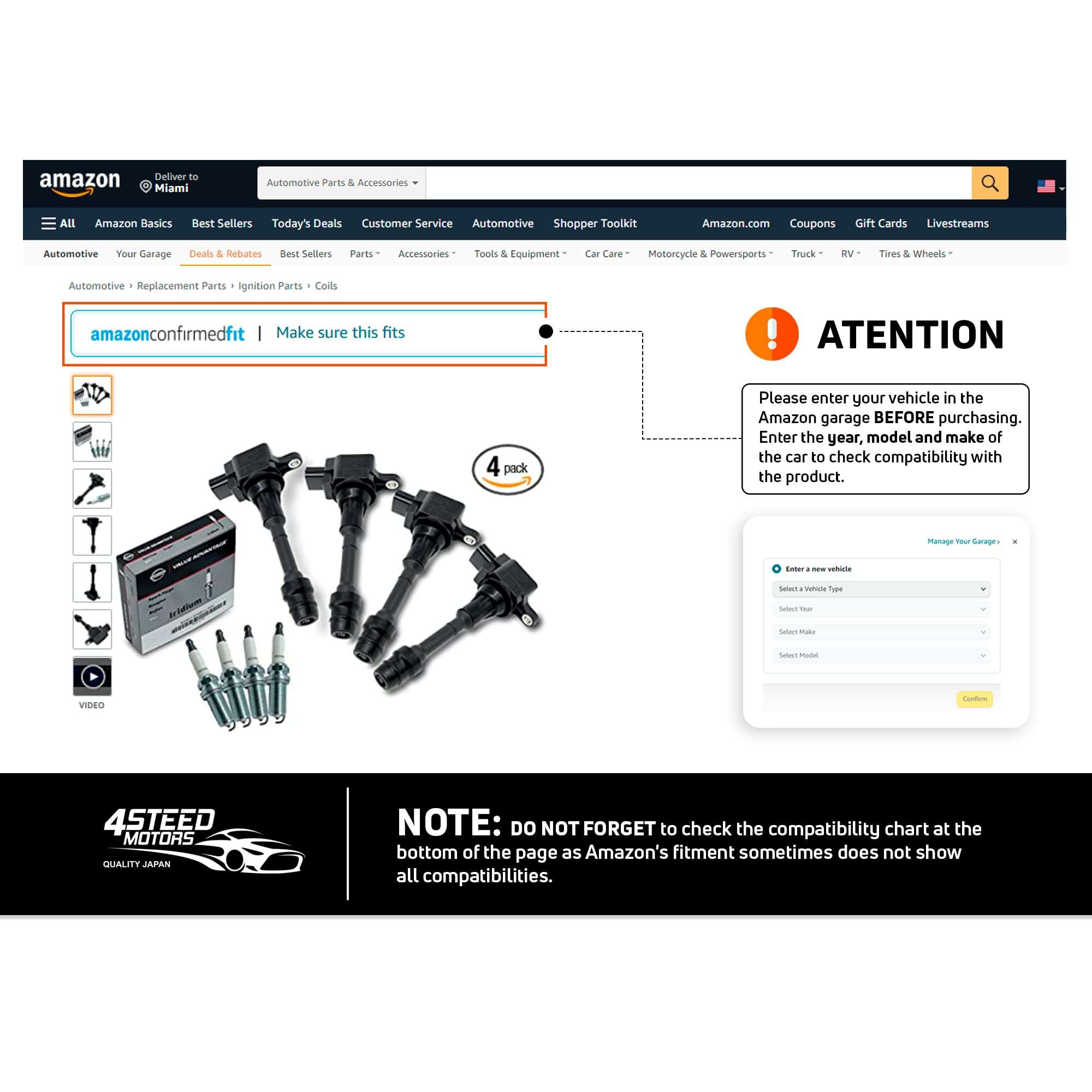 4. INCLUYE: Paquete de 9 x 7 x 4 pulgadas con 4PCS de bobinas de encendido 4STEED MOTORS y 4PCS de bujías genuinas.