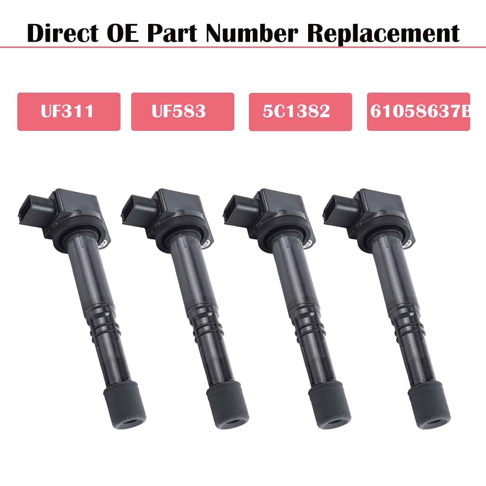 p Conjunto de 4 Bobinas de Encendido Compatible con L4 2.4 2.0 2002-2009 Honda CRV Accord Civic SI Element S2000 Pilot Acura RSX CSX Reemplaza UF311 UF583 C1382 Ventajas de las Bobinas de Encendido LCWRGS: Resolver Vibraciones, Acelerar Suavemente Reducir el consumo de combustible Arranque Rápido, Recuperación de Potencia Rápida Fiabilidad Duradera y Alto Rendimiento Diseño OEM Directo, Fácil de instalar Tipo de Conector: 3 Pines Compatibilidad: Bobinas Acura CSX 2.0L L4 2006-2011 Bobinas Acura RSX 2.0L L4 2002-2006 Bobinas Honda Accord 2.4L L4 2003-2006 Bobinas Honda Civic 2.0L L4 2002-2011 Bobinas Honda Civic Si L4 2.0L DOHC 2002-2005 Bobinas Honda CRV 2.4L L4 2002-2009 Bobinas Honda Element 2.4L L4 2003-2011 Bobinas Honda S2000 2.2L L4 2004-2005 Lista de Paquete: Conjunto de 4 Bobinas de Encendido Nota: Esta Bobina de Encendido es compatible con vehículos específicos, Por favor, introduzca cuidadosamente el Año/Make/Model/Engine de su vehículo en la parte superior de la página y también confirme el número de parte juntos para que coincida con su vehículo y asegurarse de obtener los paquetes de bobinas de encendido correctos